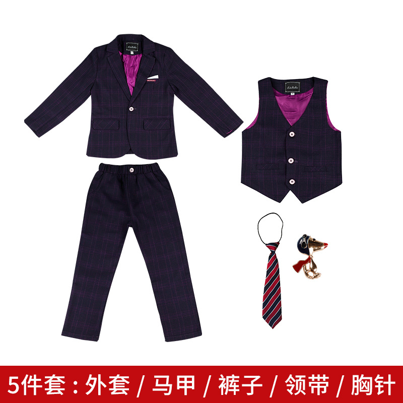 어린이 원피스 가을과 겨울 새로운 소년 꽃 소녀의 결혼식 호스트 성능 원피스 소년의 잘 생긴 단색 작은 세트 세트