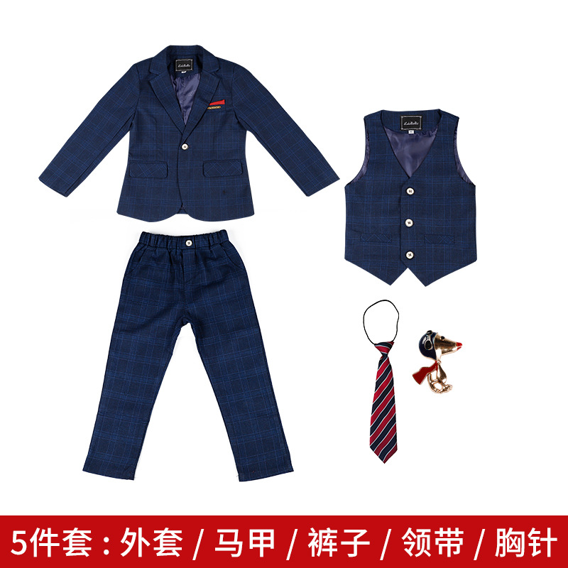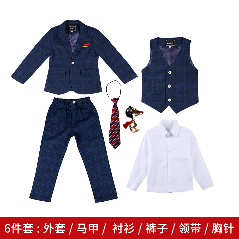 어린이 원피스 가을과 겨울 새로운 소년 꽃 소녀의 결혼식 호스트 성능 원피스 소년의 잘 생긴 단색 작은 세트 세트스토어 가기