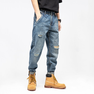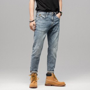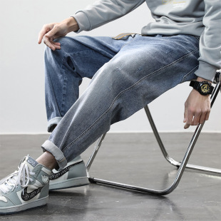 가을과 겨울 트렌디 브랜드 새로운 청바지 남성용 느슨한 스트레이트 트렌디 캐주얼 바지 탄력없는 블루 심플 레트로 바지 트렌디스토어 가기