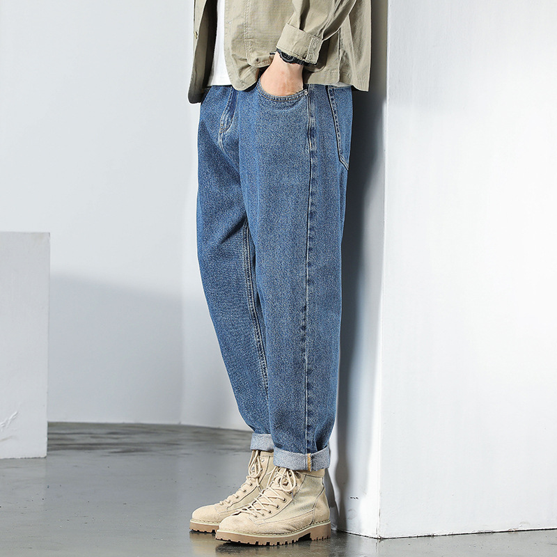 가을과 겨울 트렌디 브랜드 새로운 청바지 남성용 느슨한 스트레이트 트렌디 캐주얼 바지 탄력없는 블루 심플 레트로 바지 트렌디