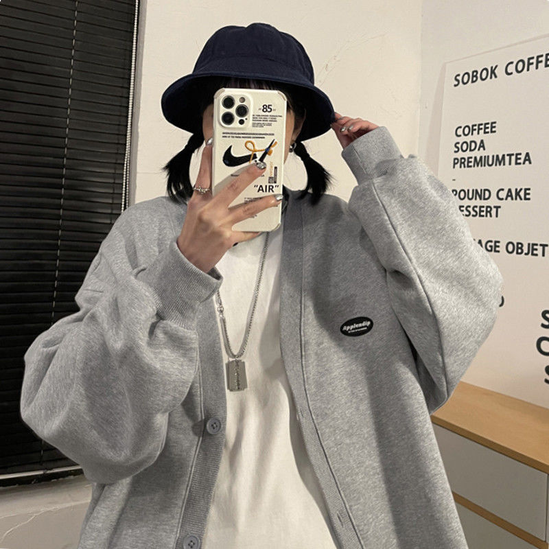 오버사이즈 여성용 스웨트셔츠 봄 가을 얇은 모델 2025년 신상 루즈핏 캐주얼 스타일 가디건 상의 아우터 인스 트렌드스토어 가기