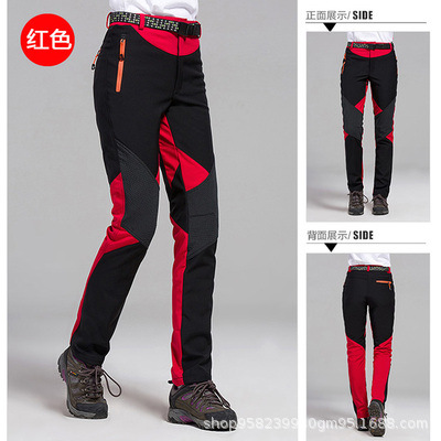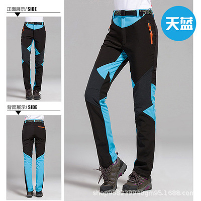 가을과 겨울 여성 프리 사이즈 양털 라이너 컬러 매칭 슬림핏 폭행 바지 방수 방풍 야외 스포츠 하이킹 바지