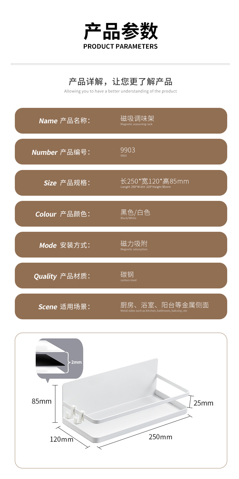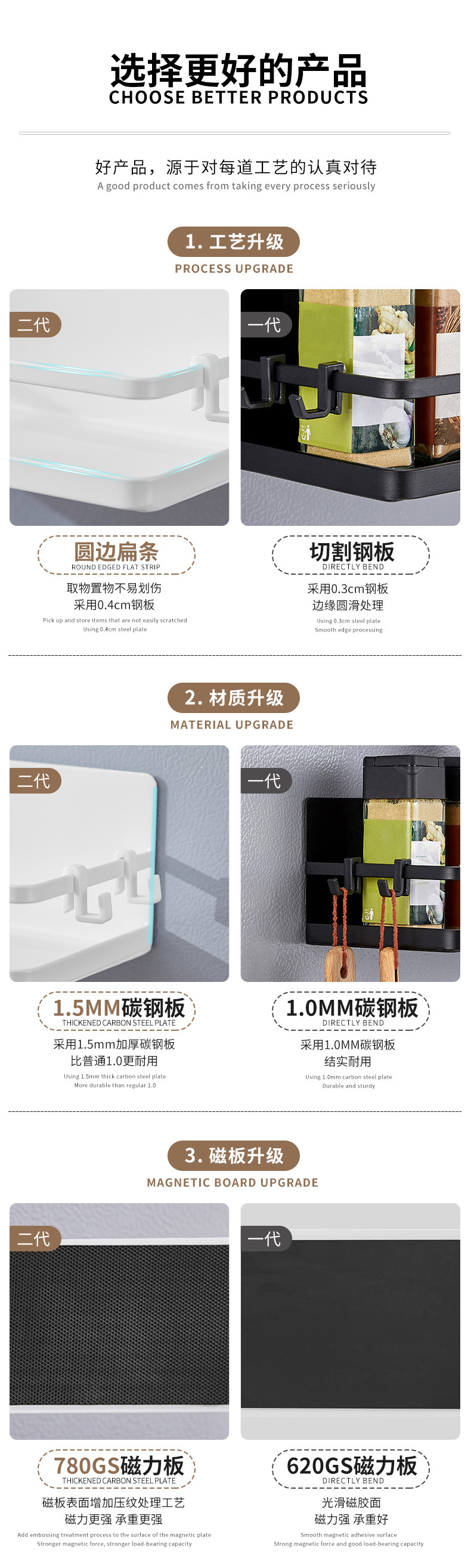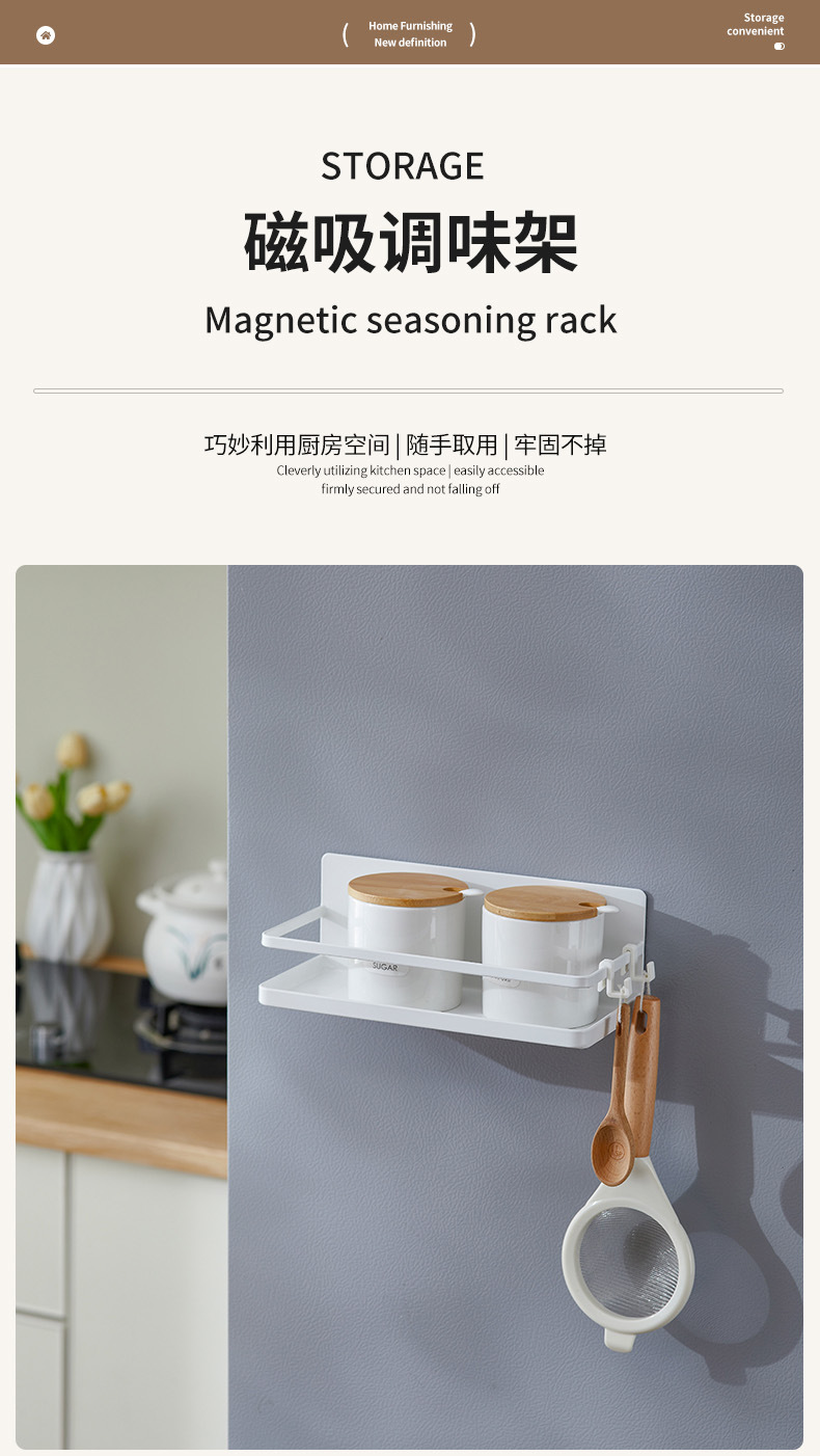 주방 조미료 보관 랙 마그네틱 벽걸이 펀치 프리 단층 보관 랙 주방 용품 다기능 수납 랙