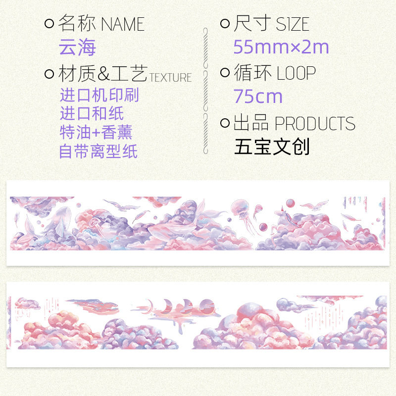 목가적 인 별장과 종이 특수 오일 핸드 계정 스티커 블루 스카이 화이트 구름 조경 장식 핸드 계정 스카이 기본 재료 테이프