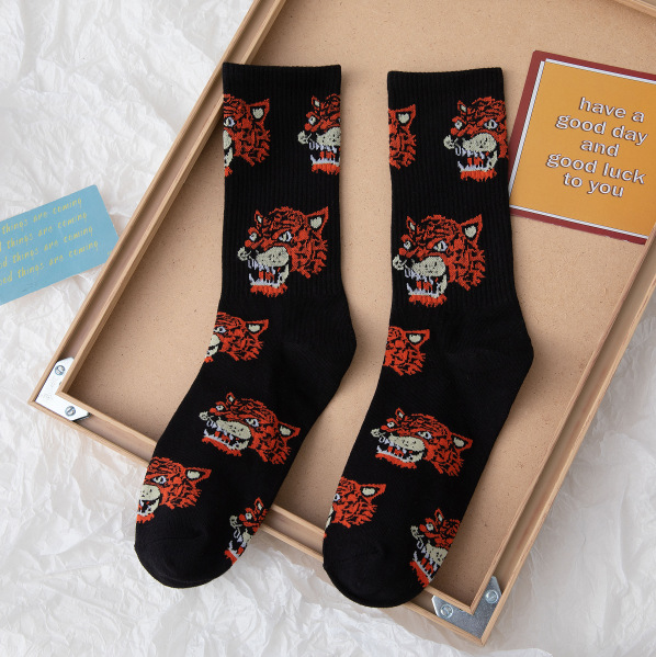 트렌디 한 단일 제품 패션 호랑이 머리면 양말 스포츠 양말 개인 거리 송아지 양말 숙녀 자카드 양말스토어 가기