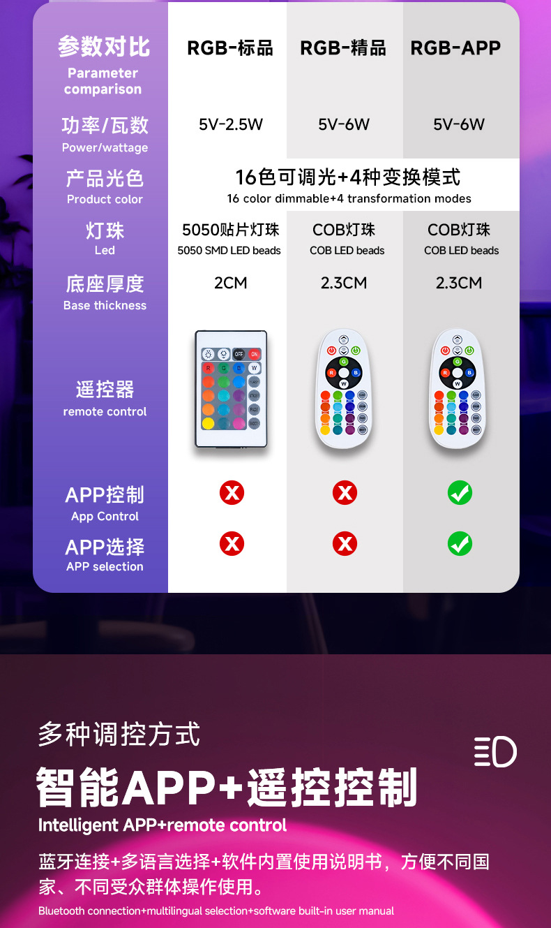 • RGB 소프트 레버 (APP + 리모콘 듀얼 컨트롤)