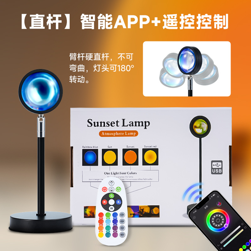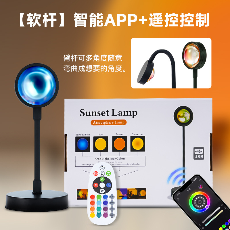 국경 간 일몰 램프 APP + 리모콘 침실 무지개 테이블 램프 일몰 프로젝션 램프 RGB16 컬러 일몰 분위기 램프스토어 가기