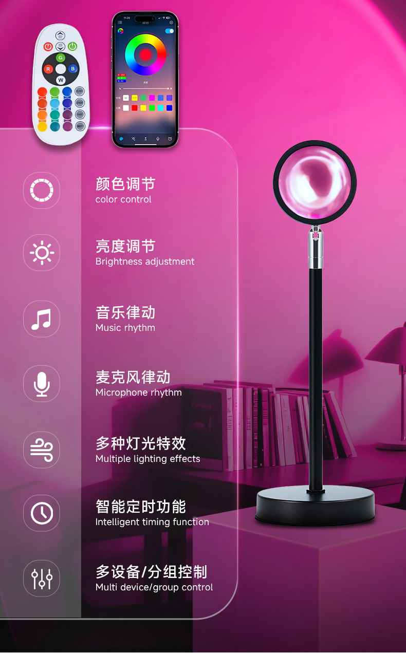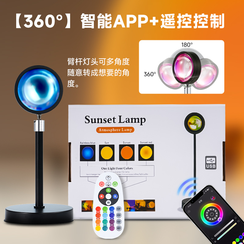 국경 간 일몰 램프 APP + 리모콘 침실 무지개 테이블 램프 일몰 프로젝션 램프 RGB16 컬러 일몰 분위기 램프