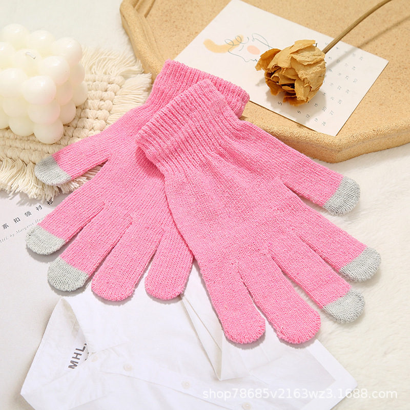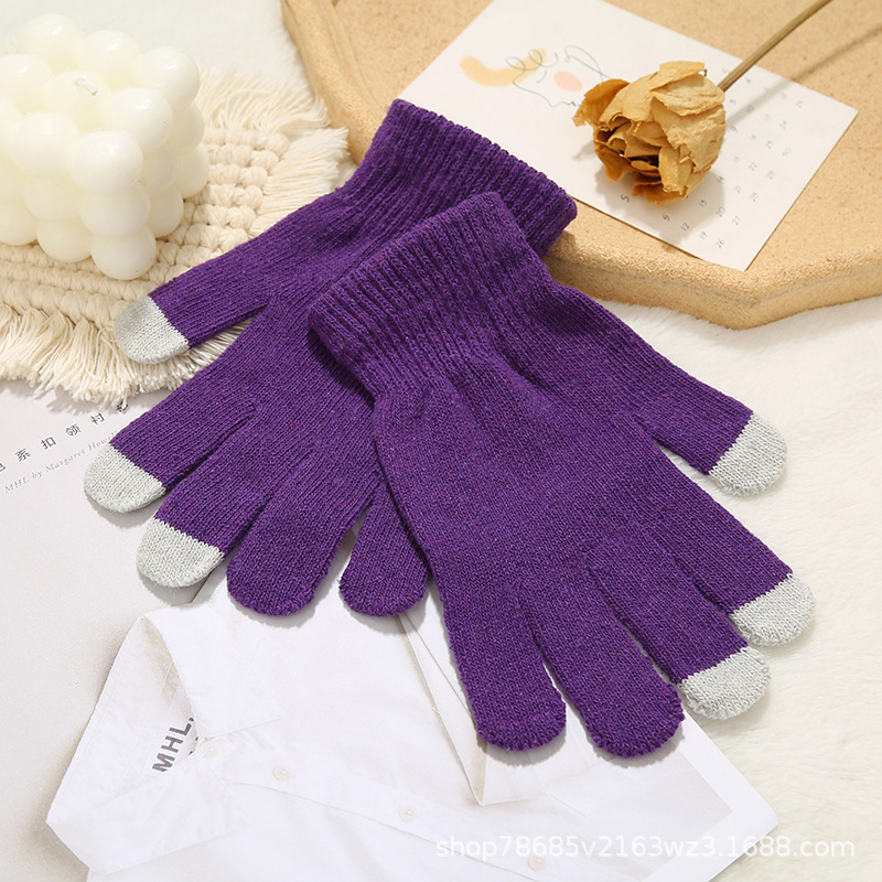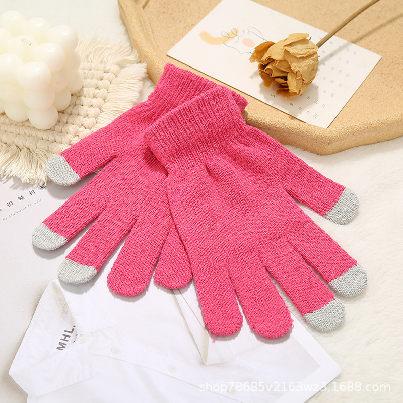 터치 신장 면 니트 장갑 따뜻한 방한 손가락 장갑 두꺼운 간단한 야외 방풍 따뜻한 장갑