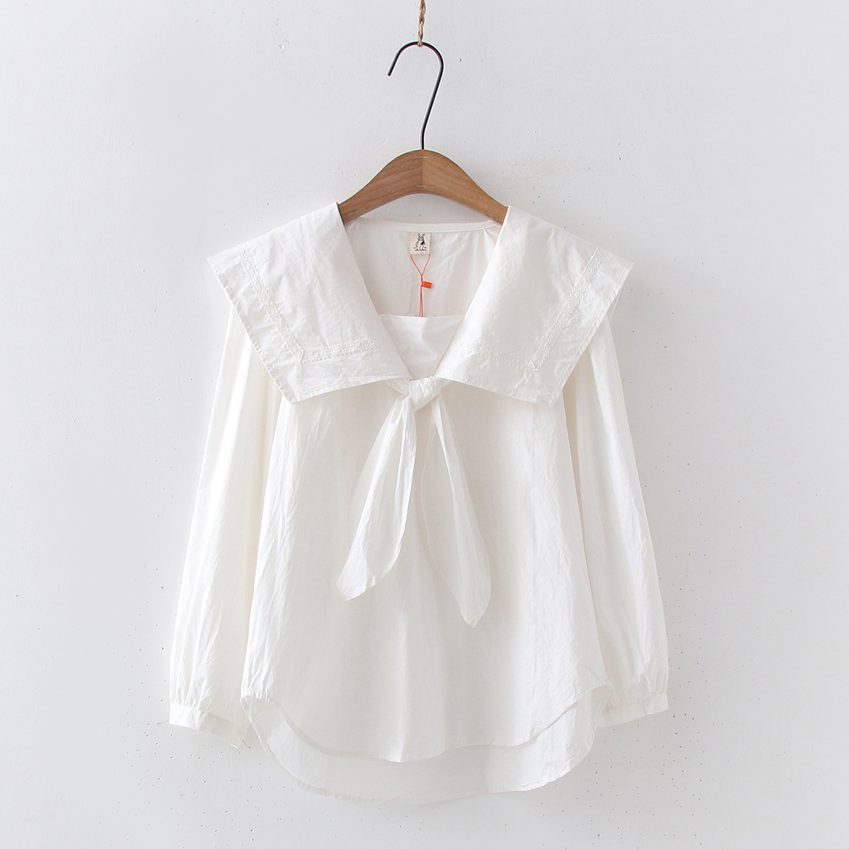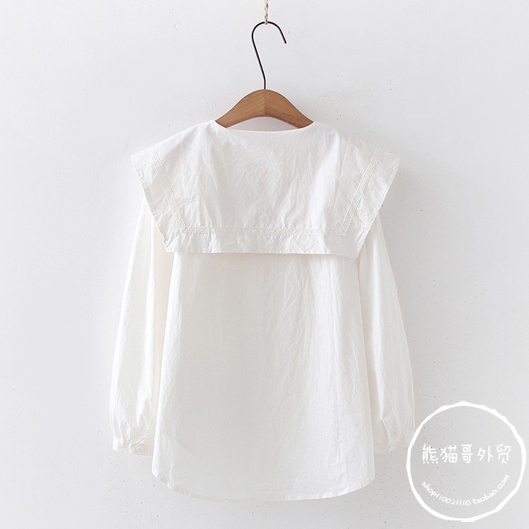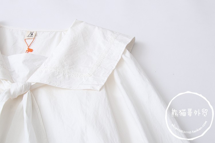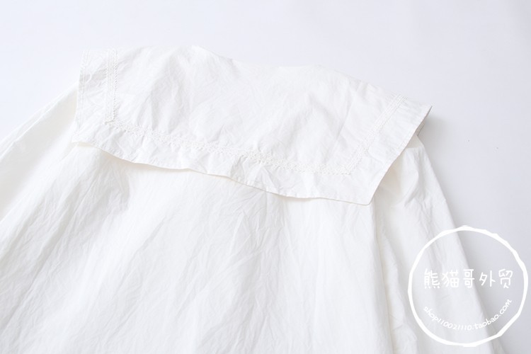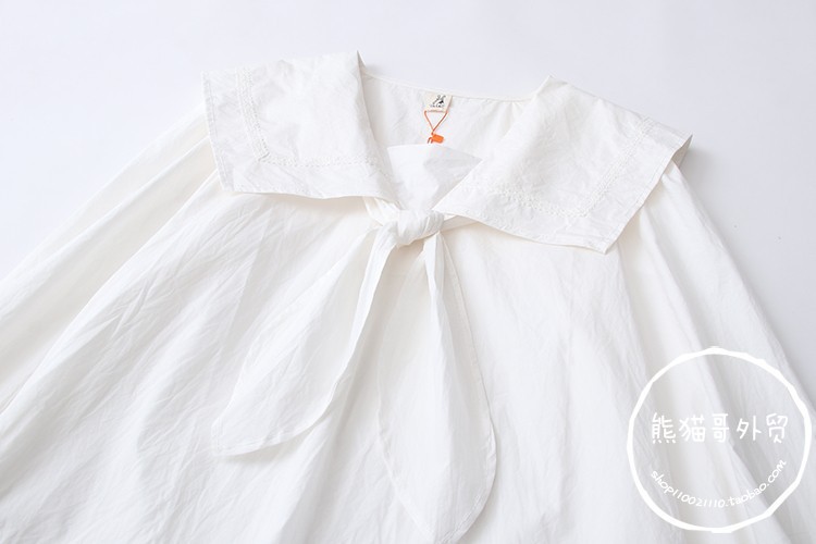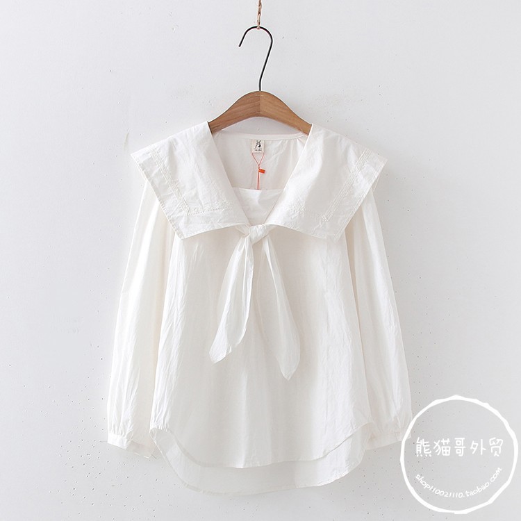 일본 대학 스타일 달콤한 네이비 칼라 레이스 업 느슨한 긴 소매 셔츠 여성 인형 셔츠 도매 20689스토어 가기