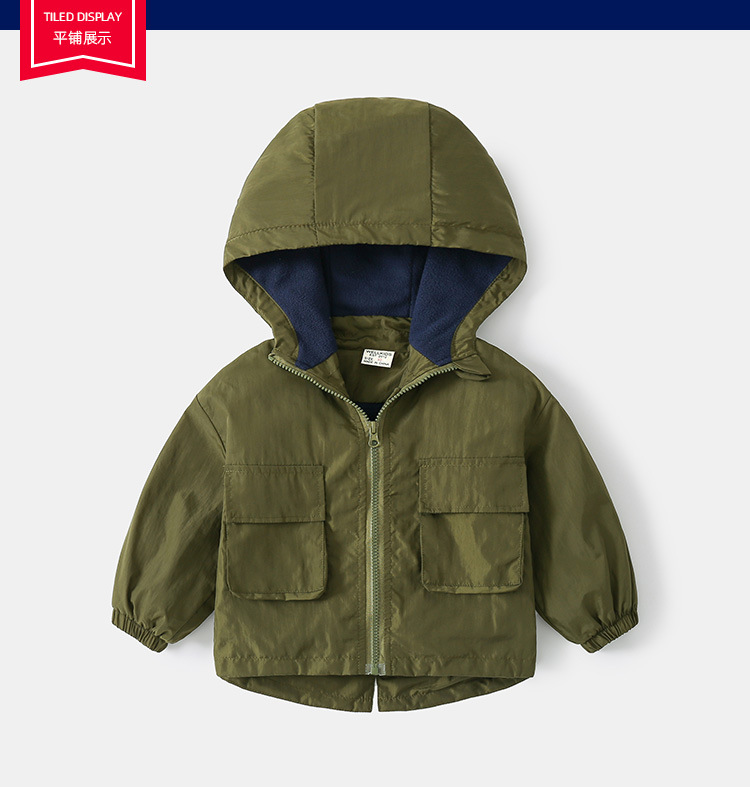 가을 2023 소년 기모 러쉬 옷 일본 툴링 대형 포켓 코트 후드 캐주얼 스타일 어린이 코트