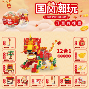 国风十二生肖积木扭蛋兼容乐高拼装玩具12合1儿童动脑DIY手工礼物