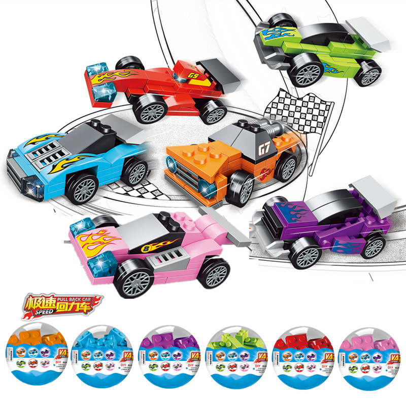 레고 빌딩 블록과 호환이 되는 작은 입자 조립 풀백 변형 레이싱 카 7cm 꼬인 계란 소년 장난감 국경 간 공급스토어 가기