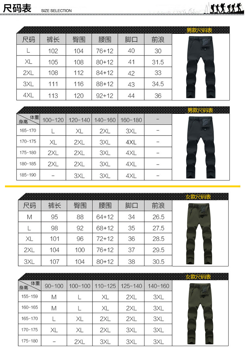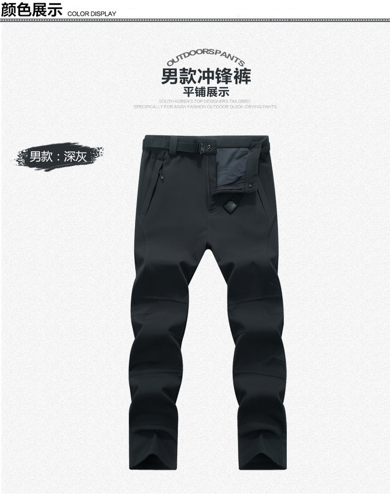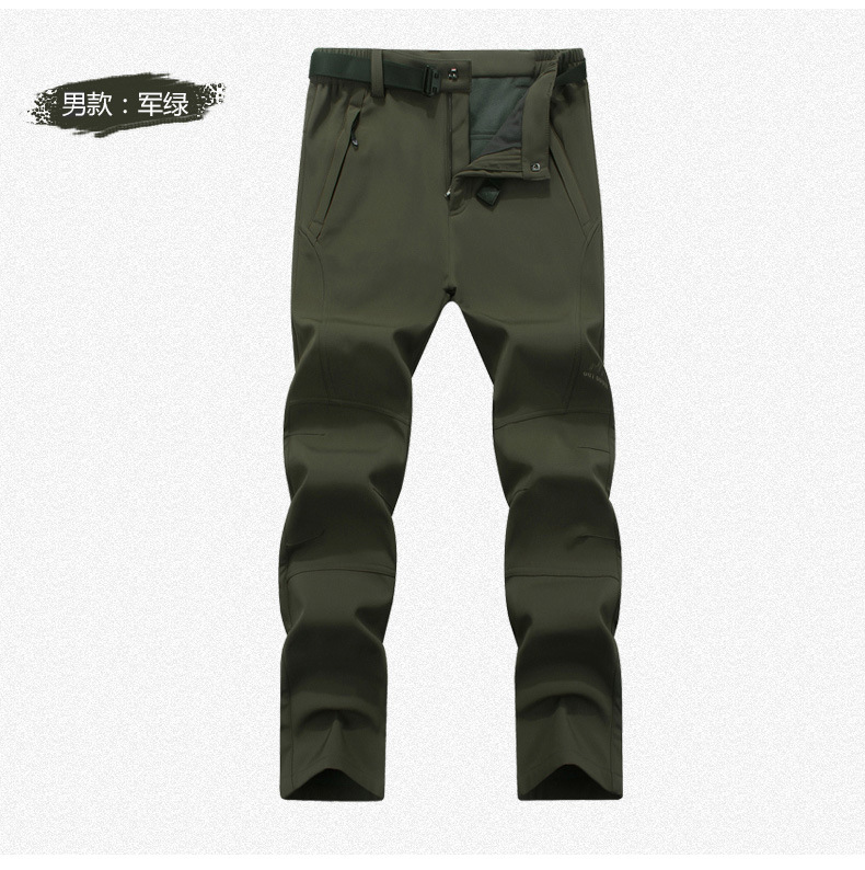 야외 충전 바지 남자의 플러스 사이즈 방수 통기성 속건 소프트 쉘 등산 바지 여자의 겨울 기모 두꺼운 따뜻한 바지