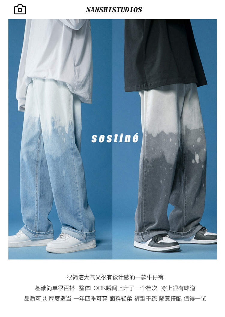 타이다이 그라디언트 컬러 청바지 남성용 여름 트렌디 한 홍콩 스타일 캐주얼 바지 한국 스타일 패션 브랜드 펜던트 와이드 레그 플로어 바지