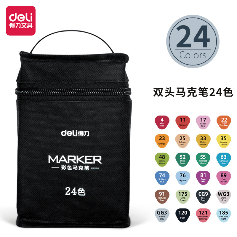 델리 70806-24 컬러 천 가방 마크 펜 카드 슬롯 어린이 더블 헤드 페인팅 펜 특수 애니메이션 블랙로드스토어 가기