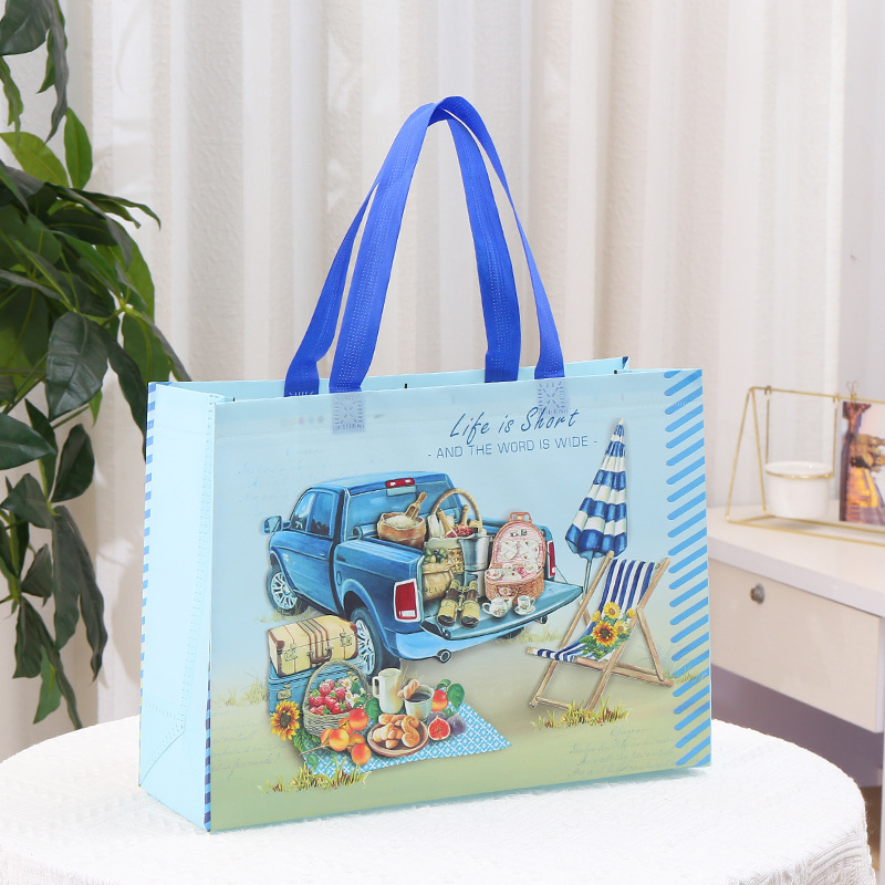 크리에이티브 컬러 부직포 필름 가방 케이터링 음료 음식 배달 가방 슈퍼마켓 보관 접이식 쇼핑백