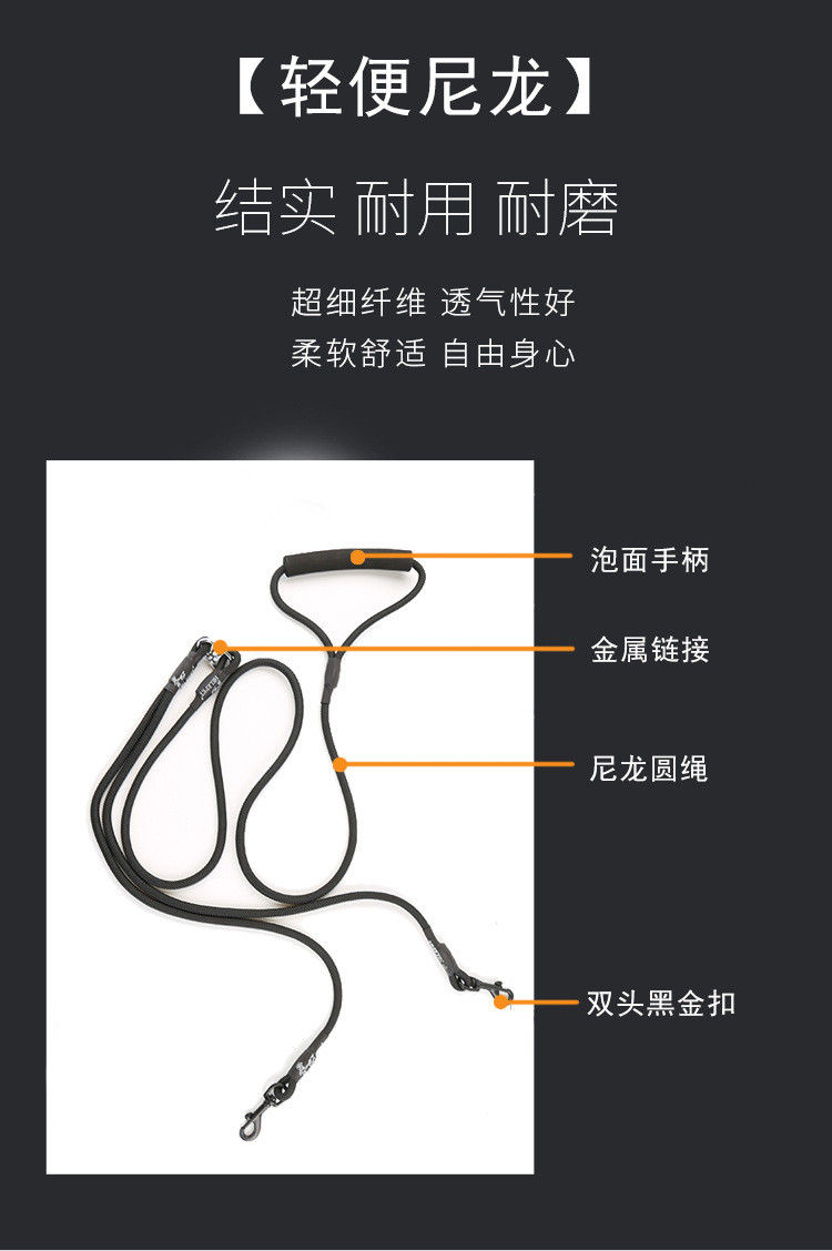 애완 동물 1 견인 2 견인 로프 두꺼운 나일론 더블 개 로프 야외 산책 개 원형 로프 애완 동물 제품 도매 재고