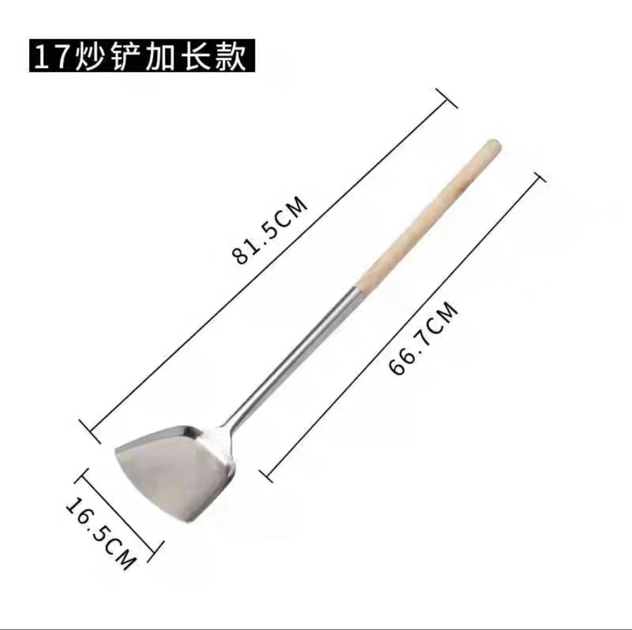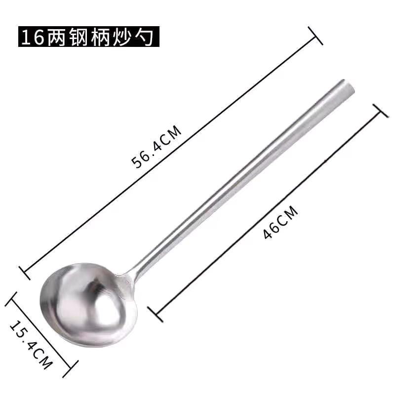 나무 손잡이 주걱 스테인리스 스틸 주방 볶음 숟가락 수프 스푼 두꺼운 요리사 긴 손잡이 주걱 볶음 숟가락 가정용 주방 도구