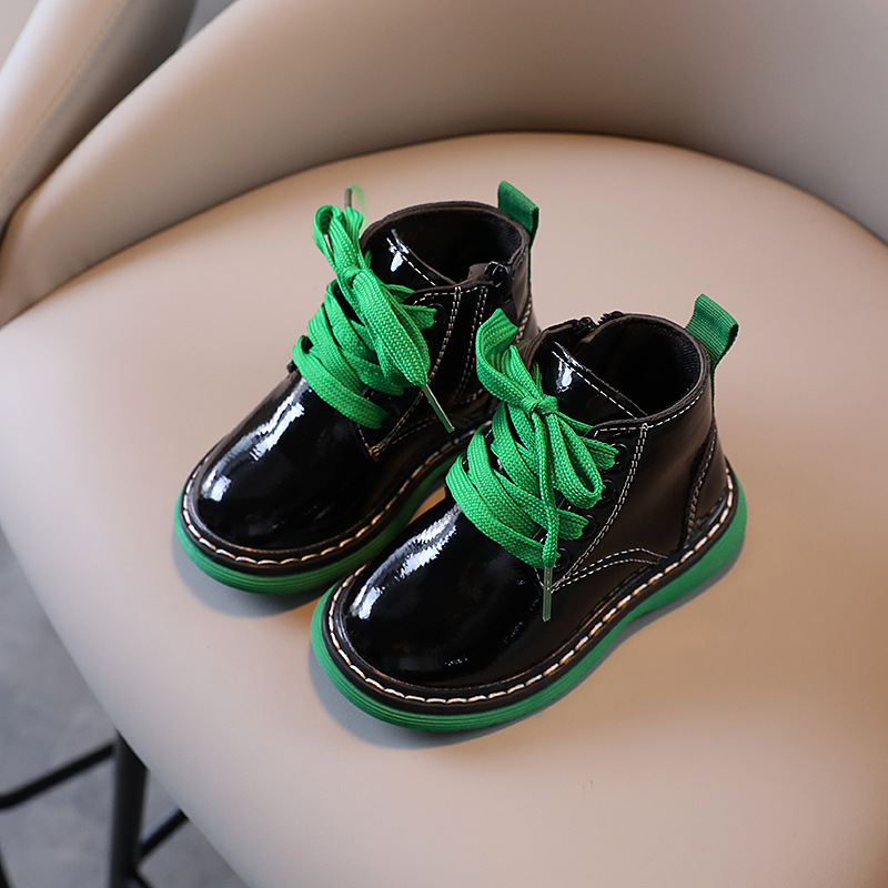 정리 가을 겨울 아동 신발 여아 트렌디 한 앵클 부츠 소프트 솔 밝은 가죽 싱글 부츠 대비 가죽 신발 부드러운 표면 편안한 마틴 부츠
