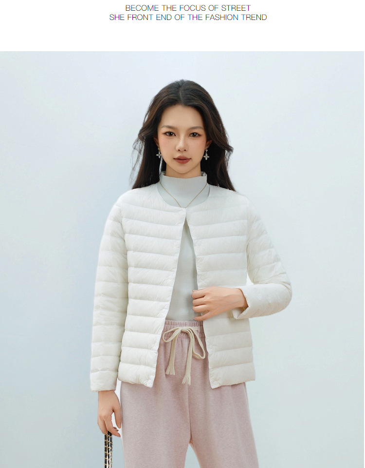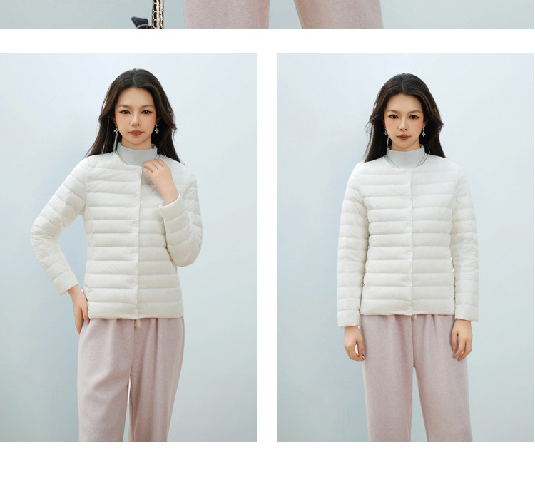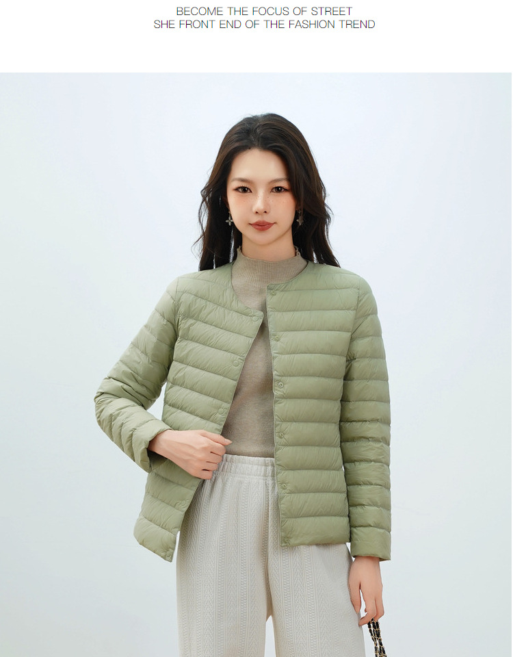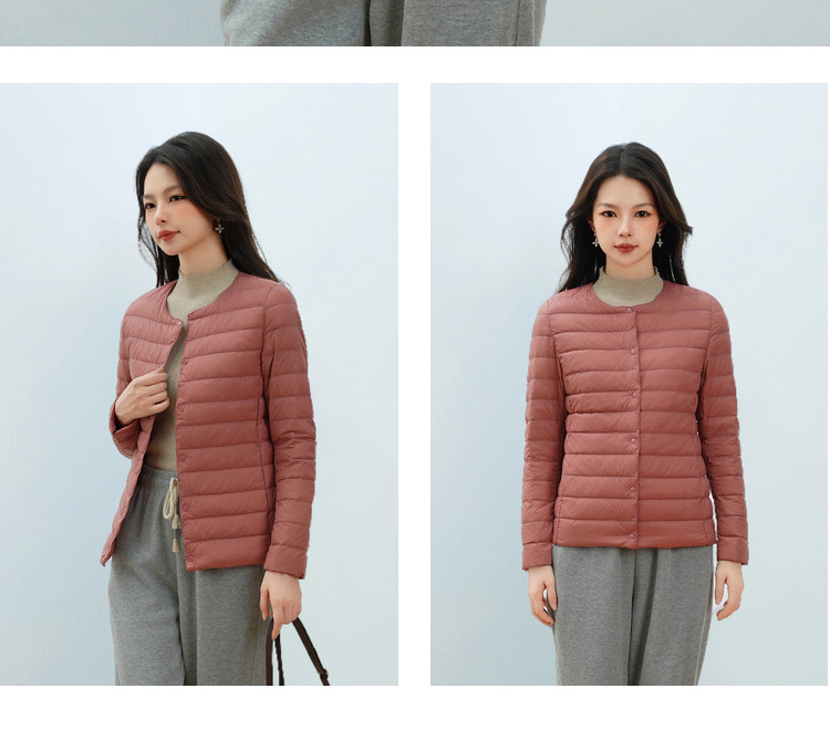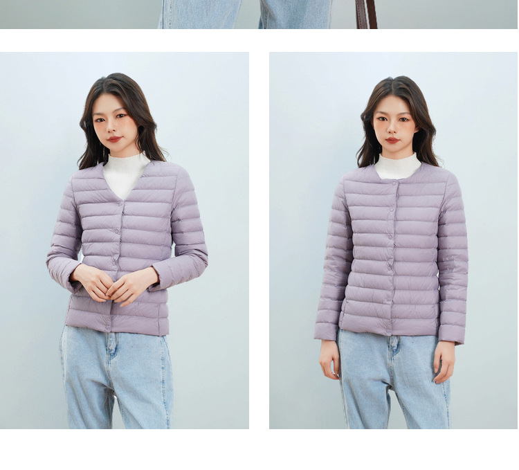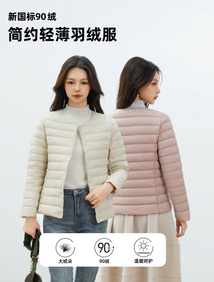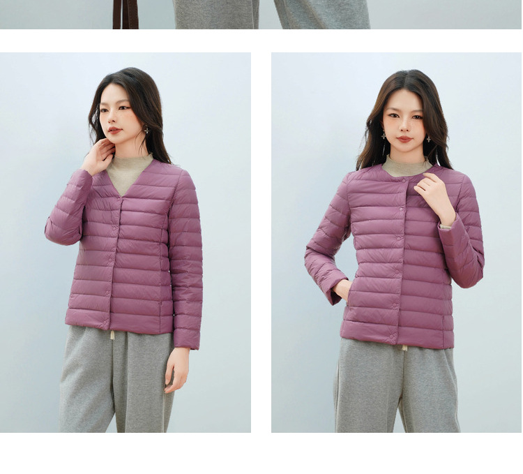 Pinghu Chi 새로운 여성 새로운 국가 표준 90 벨벳 새로운 솔리드 컬러 여성 라운드 넥 v 넥 단순 긴팔 다운 재킷