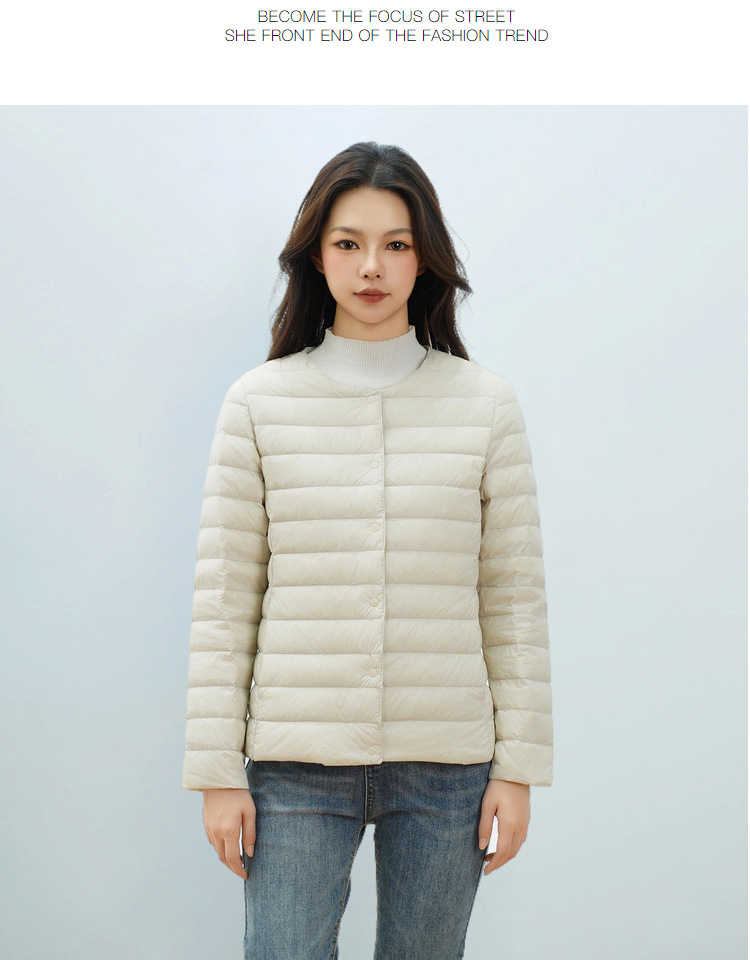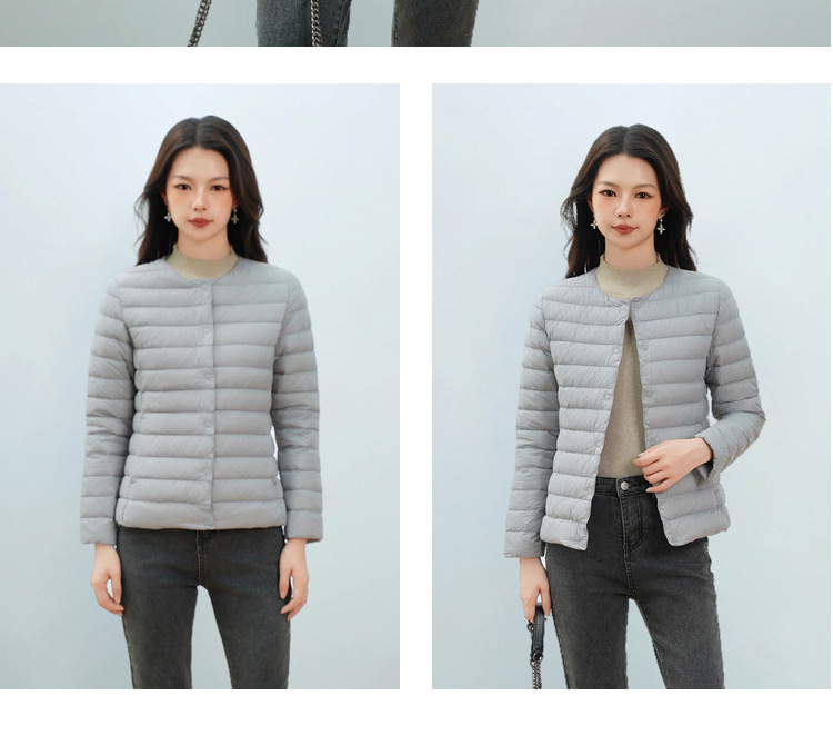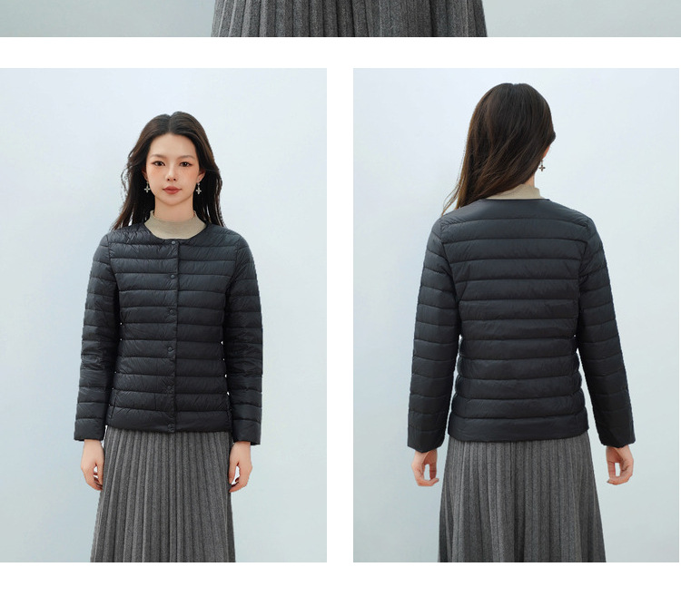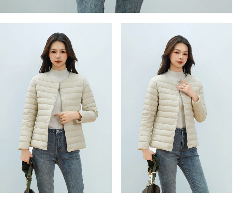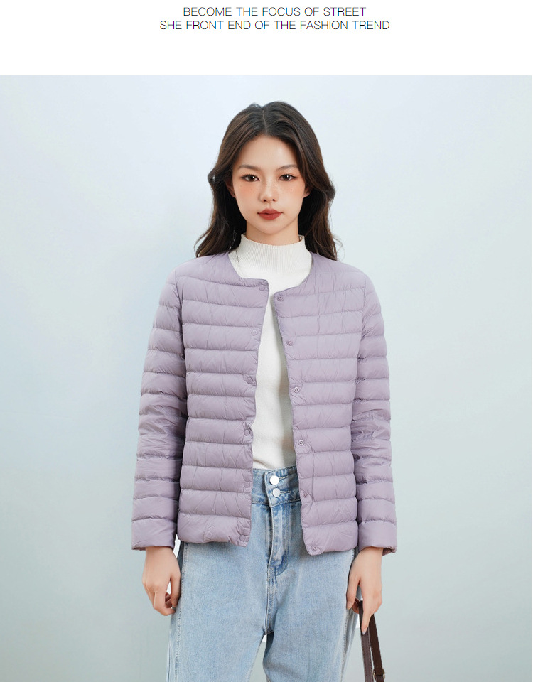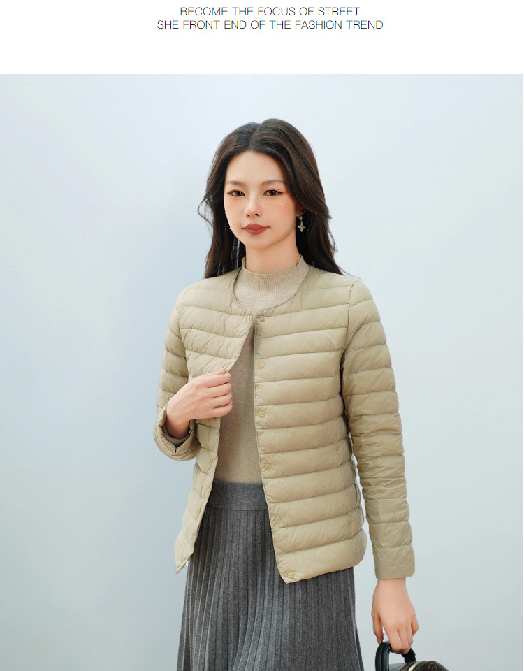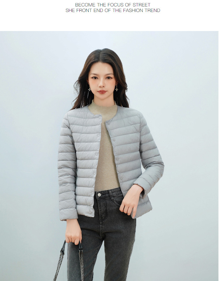 Pinghu Chi 새로운 여성 새로운 국가 표준 90 벨벳 새로운 솔리드 컬러 여성 라운드 넥 v 넥 단순 긴팔 다운 재킷