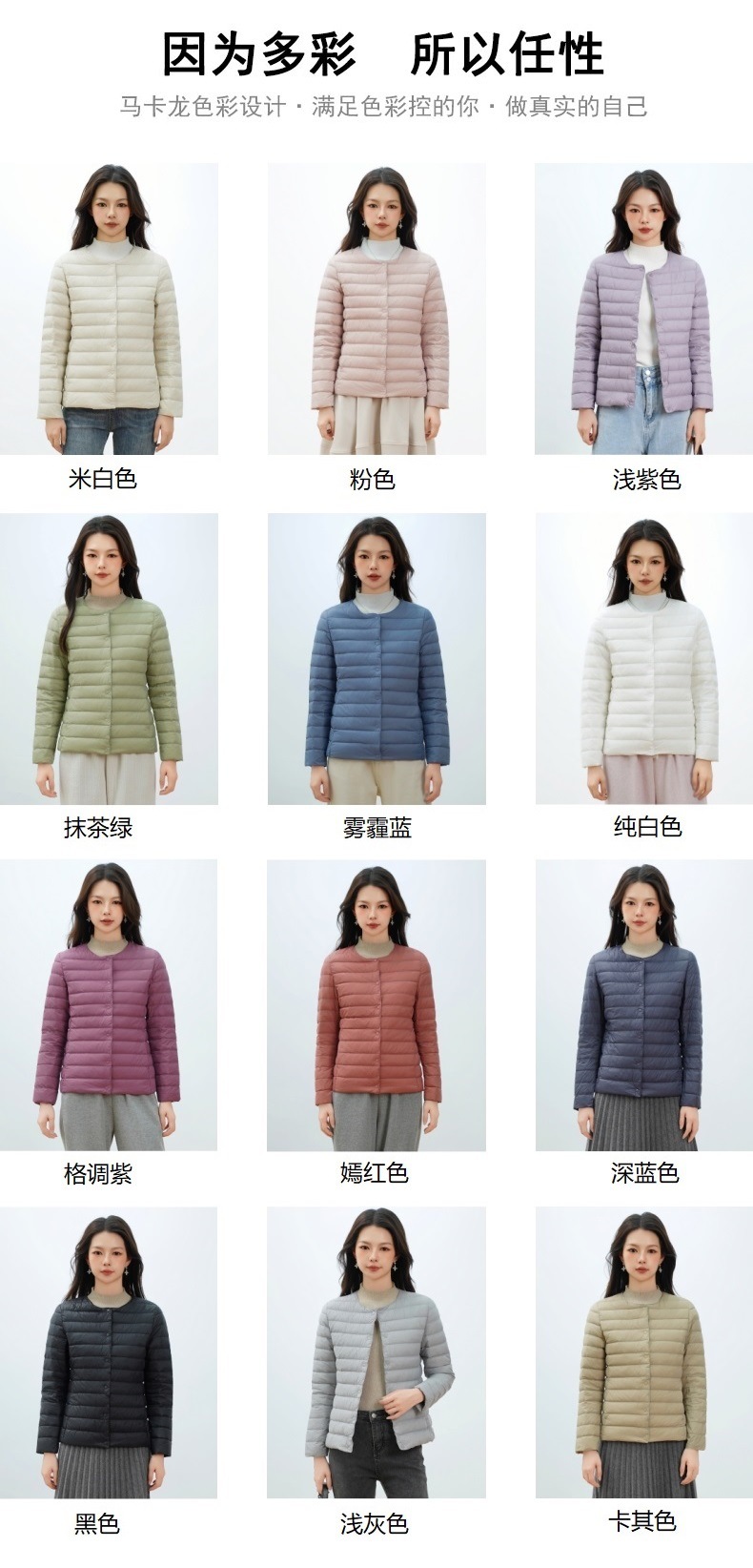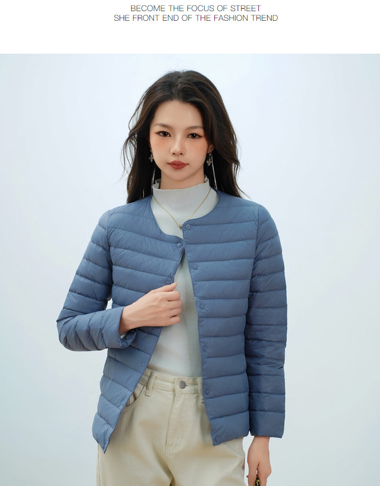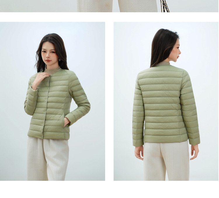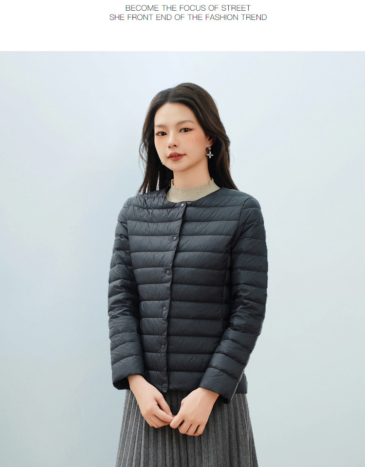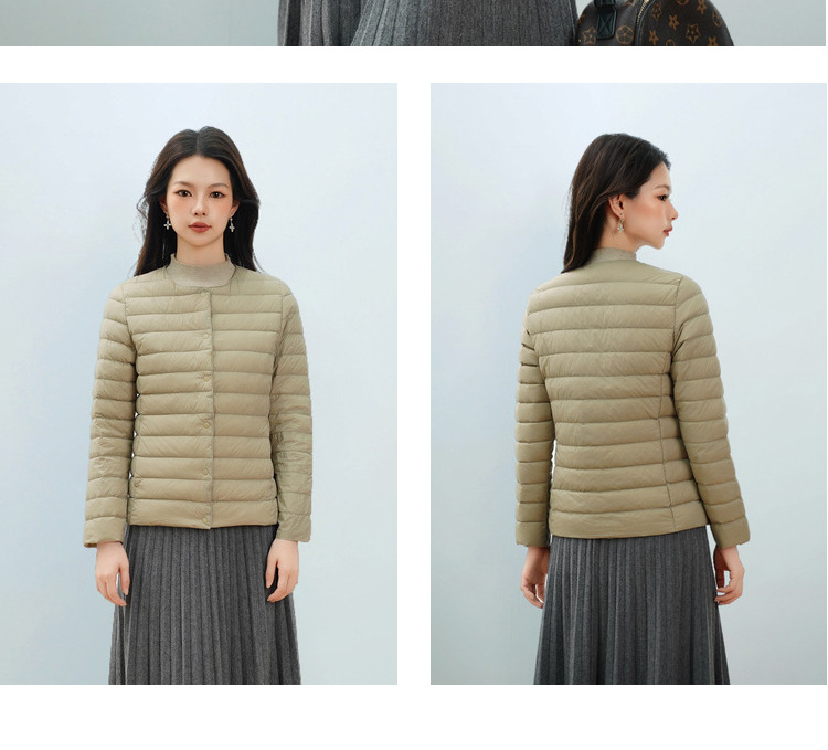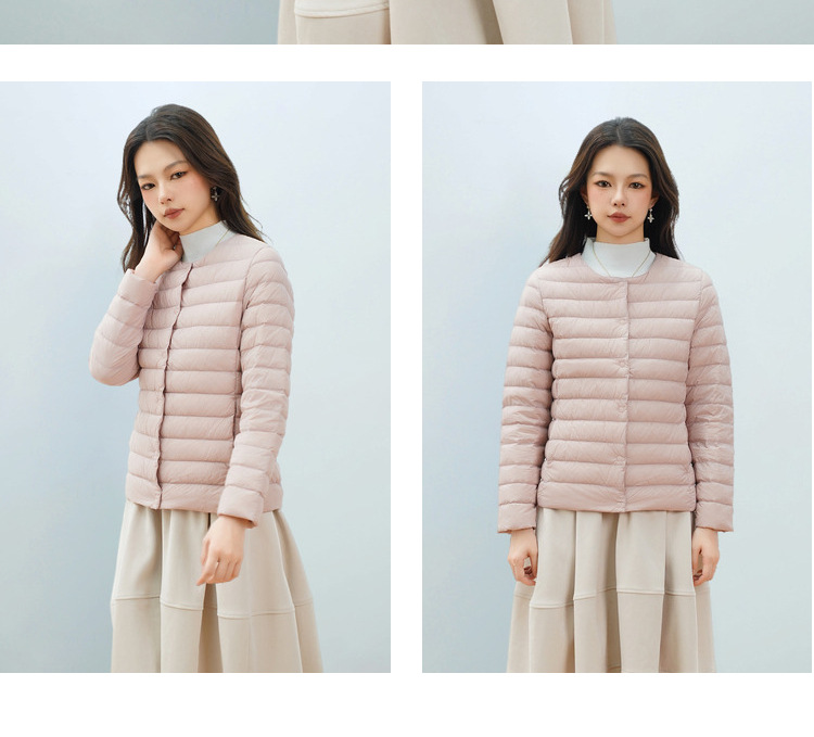 Pinghu Chi 새로운 여성 새로운 국가 표준 90 벨벳 새로운 솔리드 컬러 여성 라운드 넥 v 넥 단순 긴팔 다운 재킷