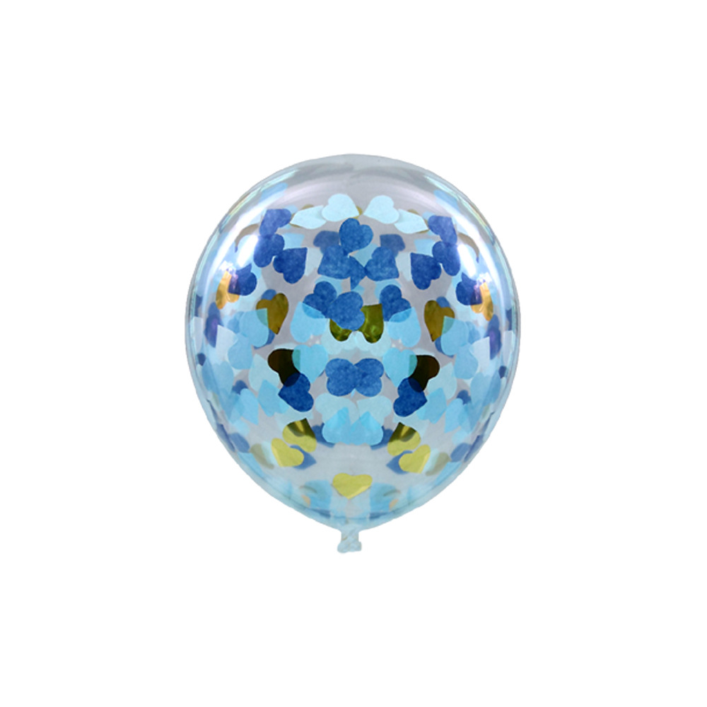 12 인치 투명 라텍스 하트 모양의 블루 파우더 종이 풍선 파티 장식 스퀸 풍선 사랑 종이 색종이 풍선