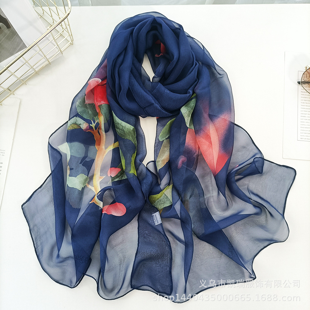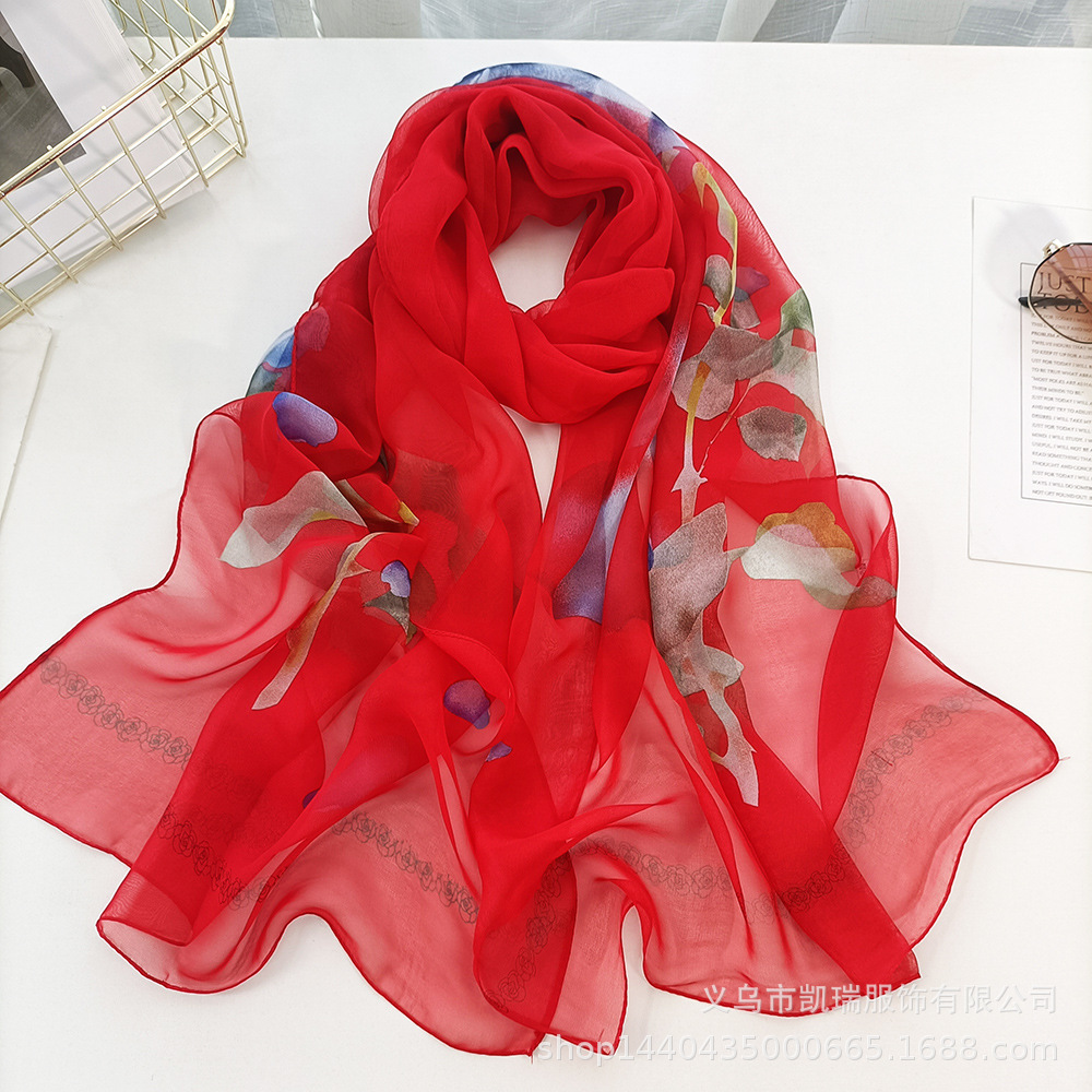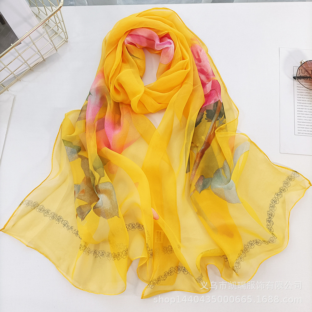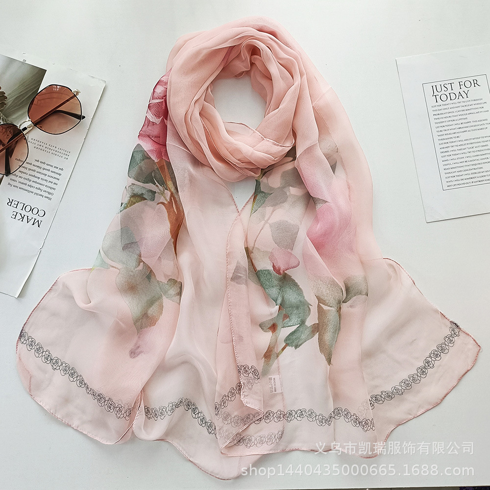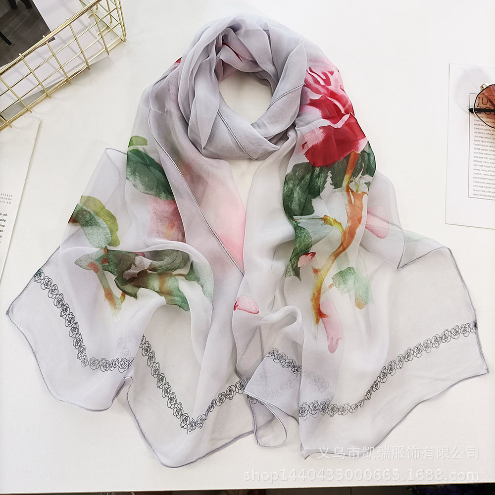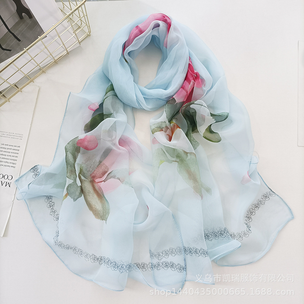 여성용 얇은 실크 스카프 Qiaoqi 실크 다용도 목 장식 한국식 자외선 차단제 어머니 장미 봄과 가을 스카프
