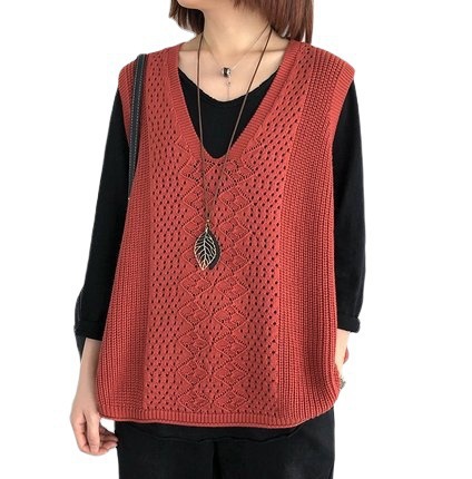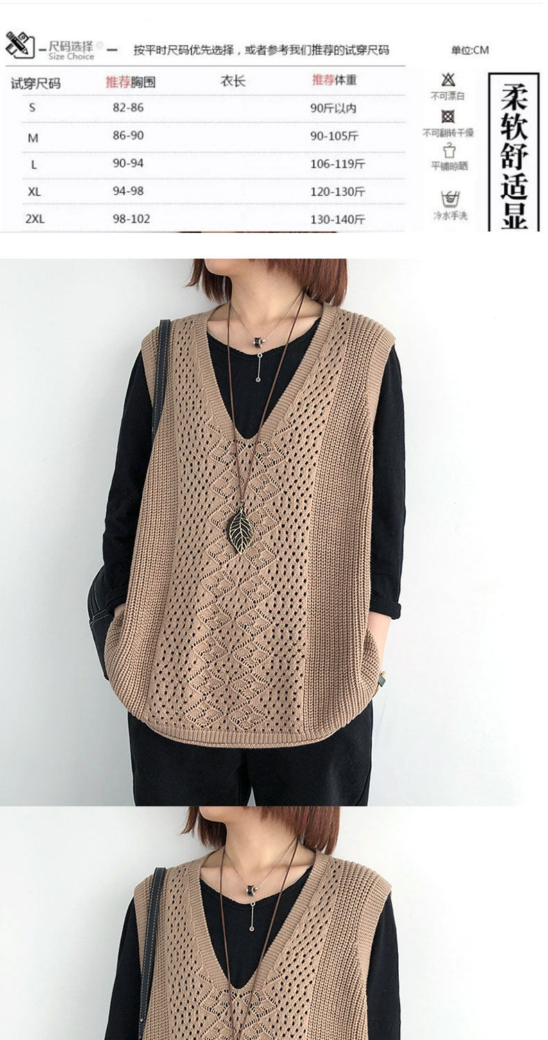 여자의 니트 조끼 봄 얇은 느슨한 플러스 사이즈 민소매 V-넥 조끼 복고풍 풀오버 조끼 유행
