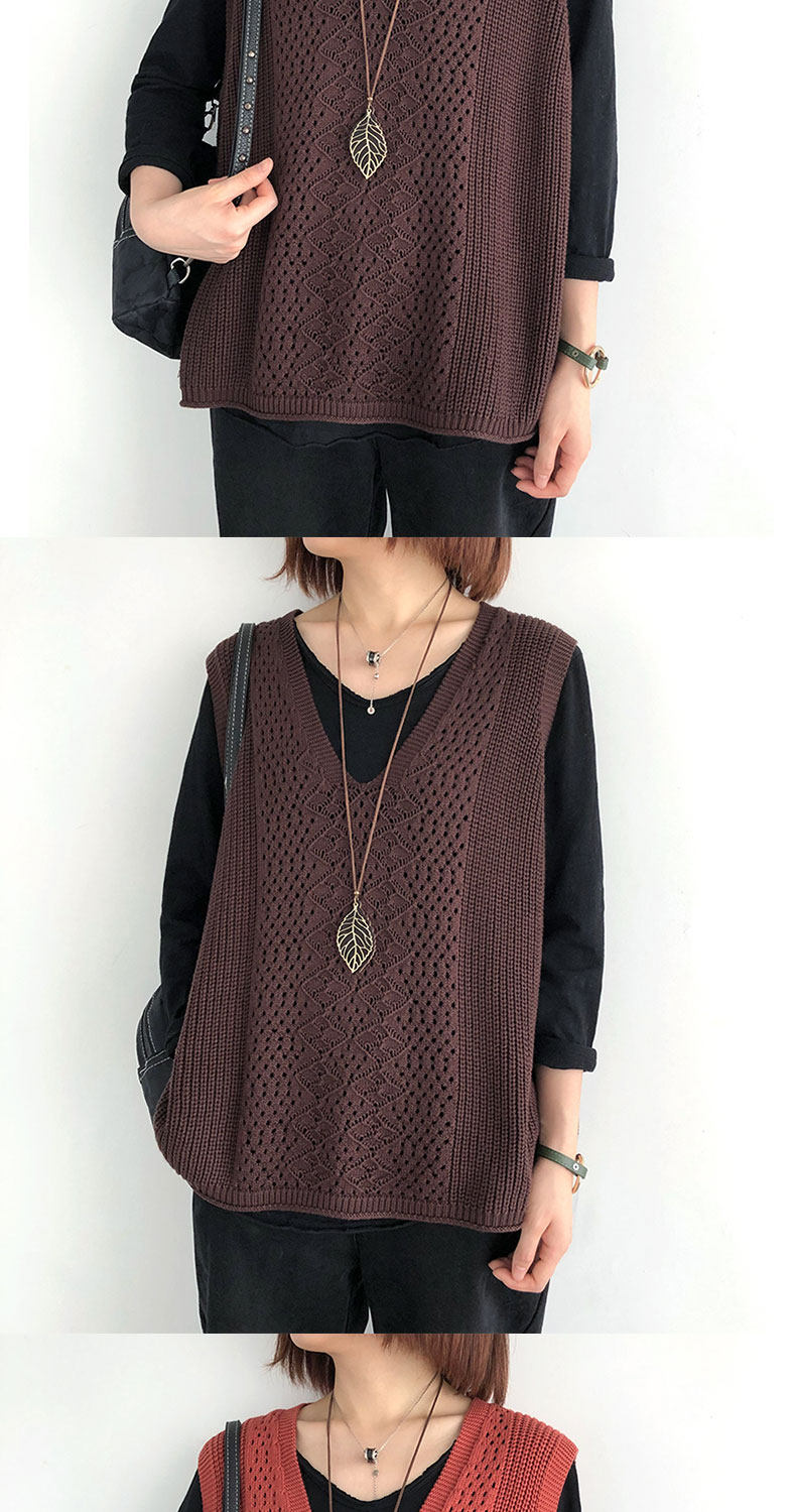 여자의 니트 조끼 봄 얇은 느슨한 플러스 사이즈 민소매 V-넥 조끼 복고풍 풀오버 조끼 유행스토어 가기
