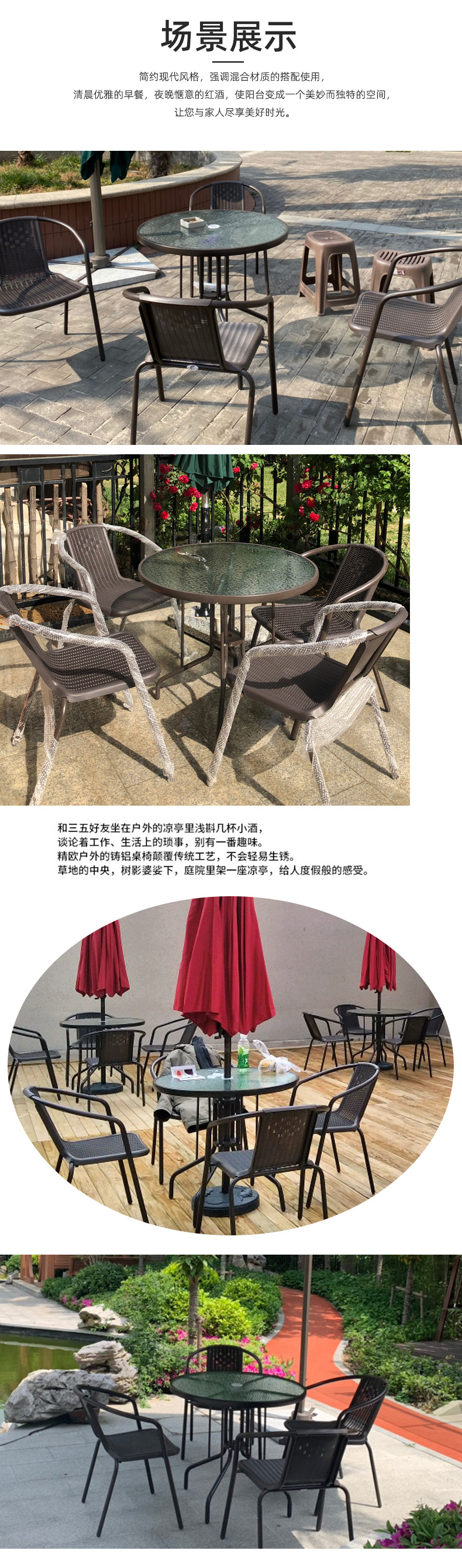 원형 식탁과 의자, 밀크티 가게, 레스토랑 테이블과 의자, 야외 레저 고급 철제 식탁과 의자, 파라솔 설치 가능 원형 테이블