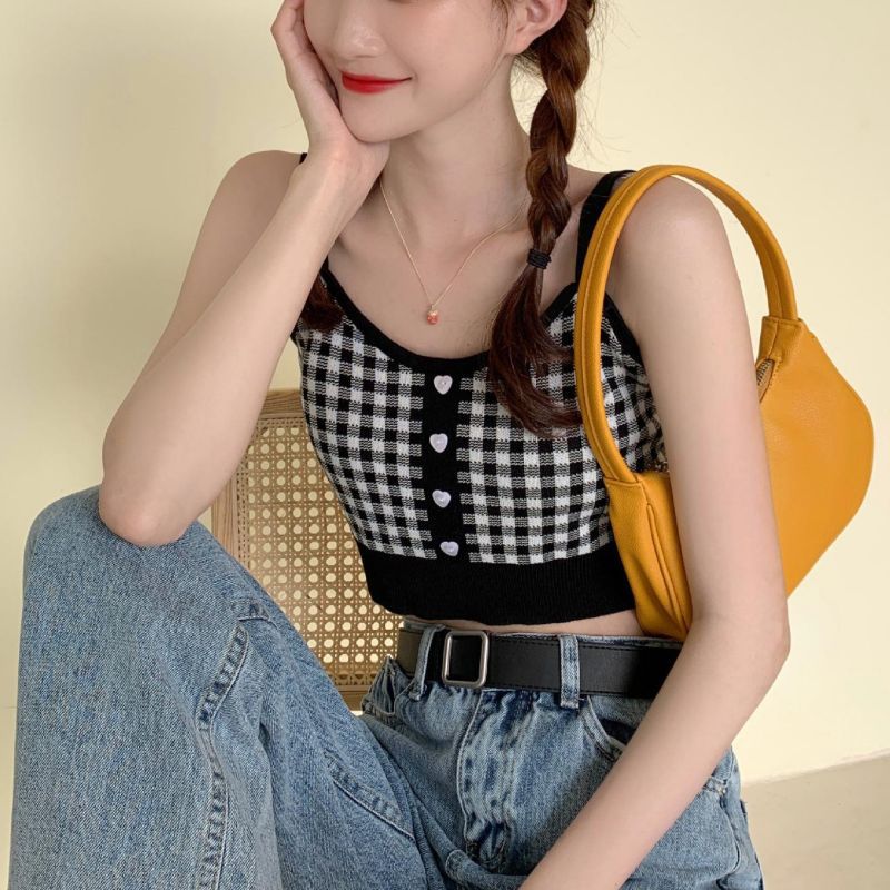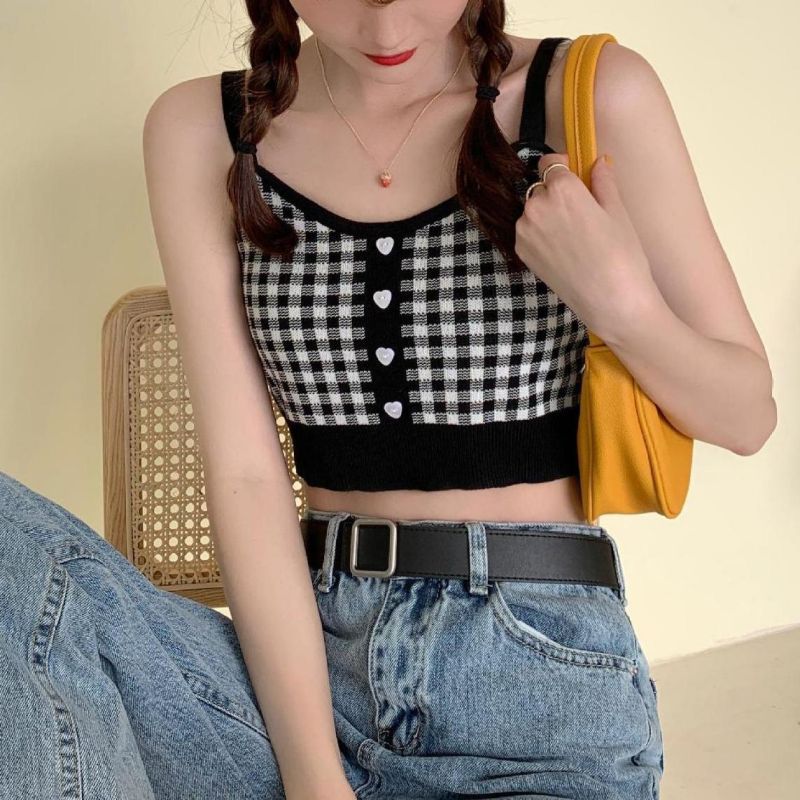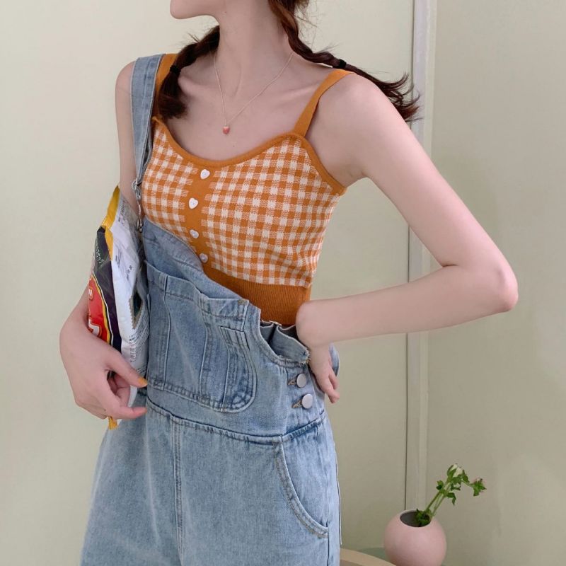 2025 핫걸 여성 여름 프렌치 캐미솔 이너웨어, 퓨어 러스티 튜브탑, 밑단이 짧은 탑, 컬러 대비 아우터웨어스토어 가기