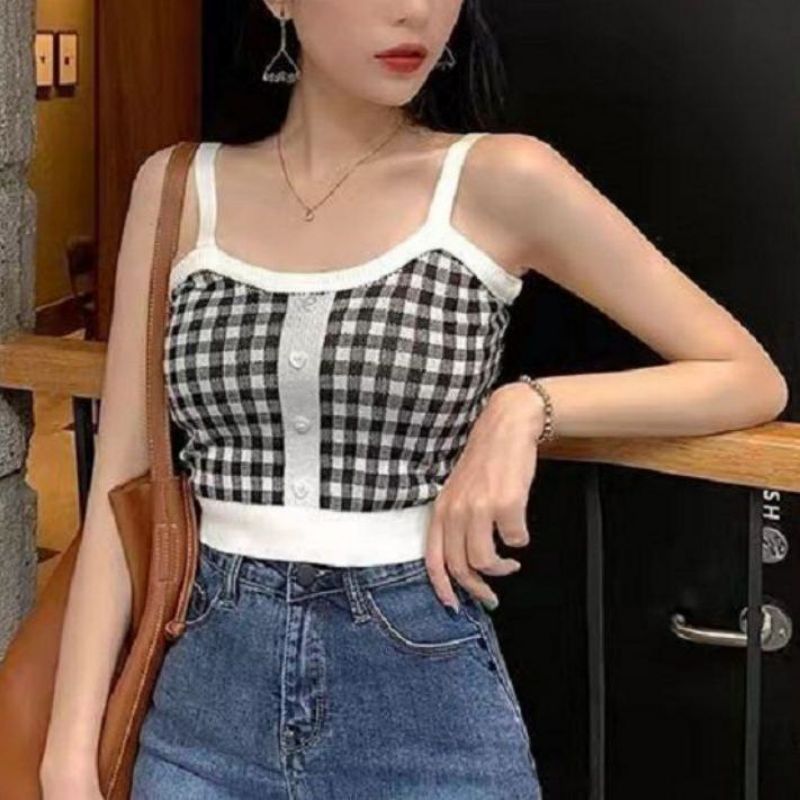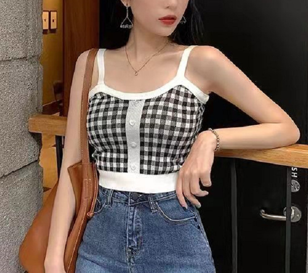 2025 핫걸 여성 여름 프렌치 캐미솔 이너웨어, 퓨어 러스티 튜브탑, 밑단이 짧은 탑, 컬러 대비 아우터웨어