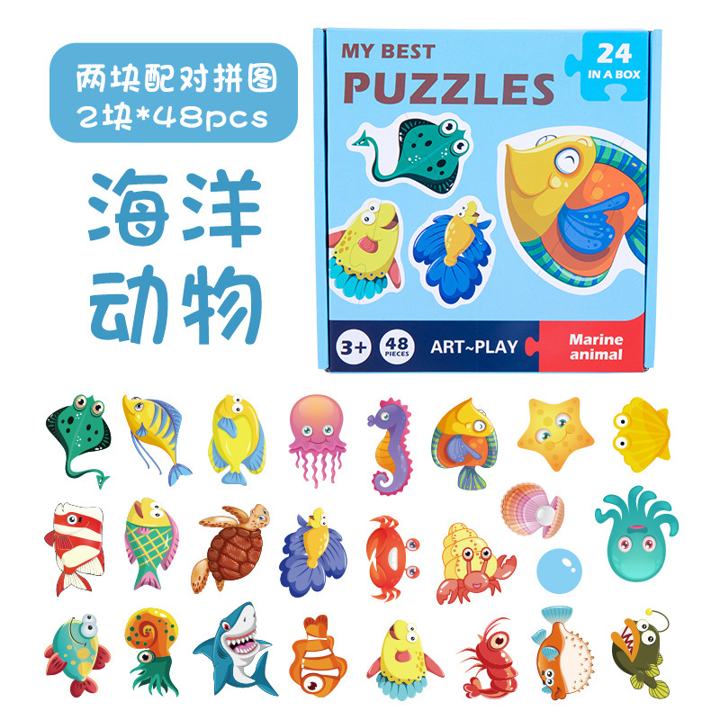 어린이 퍼즐 조기 교육 휴대용 매칭 48 조각 직소 만화 동물 교통인지 직소 선물 상자스토어 가기