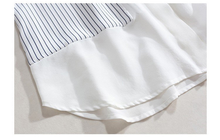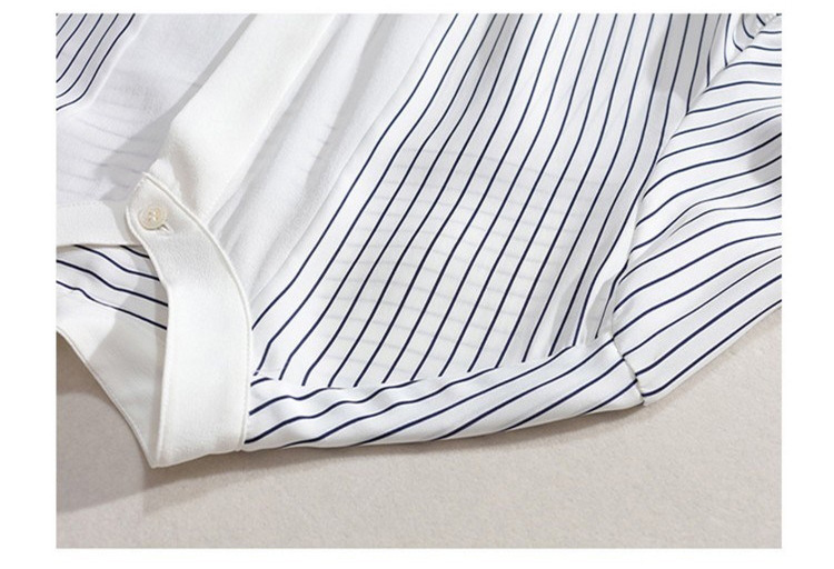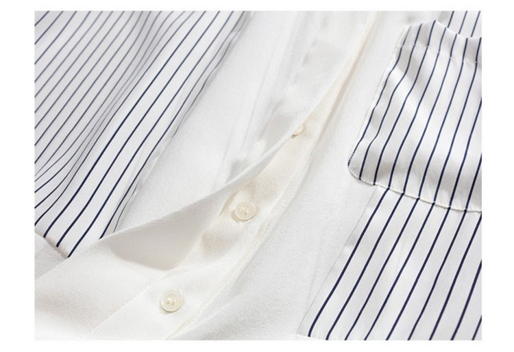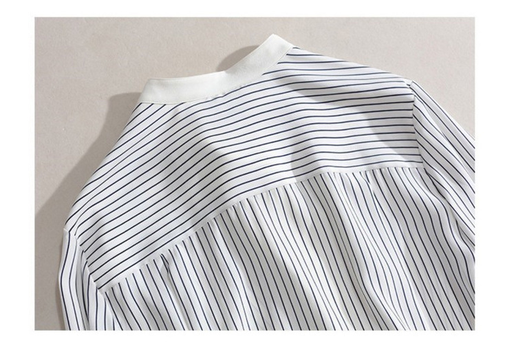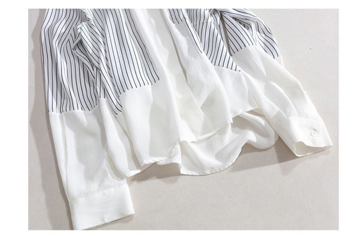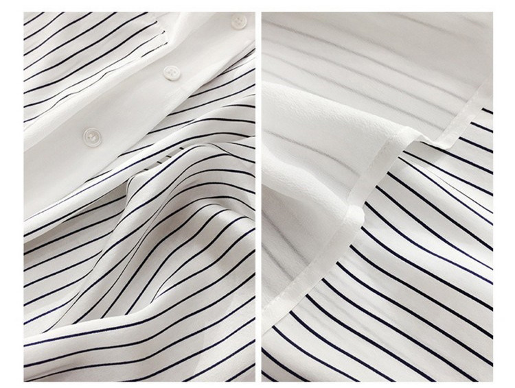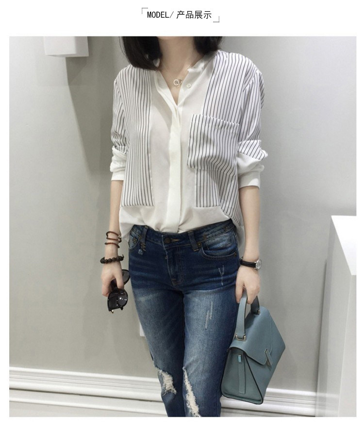 사전 판매 봄과 여름 새로운 느슨한 쉬폰 셔츠 여성의 세련된 우아한 줄무늬 V 넥 긴팔 전문 최고 트렌디스토어 가기