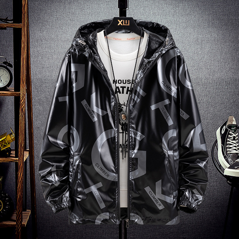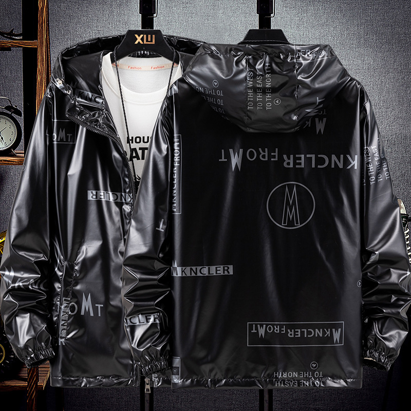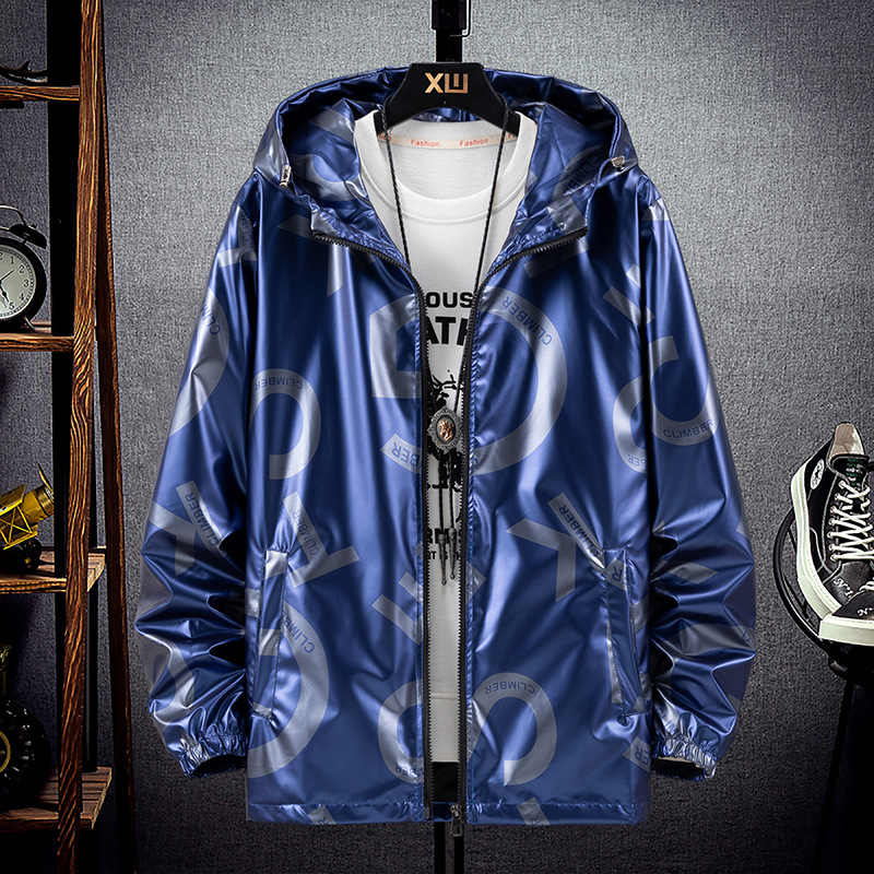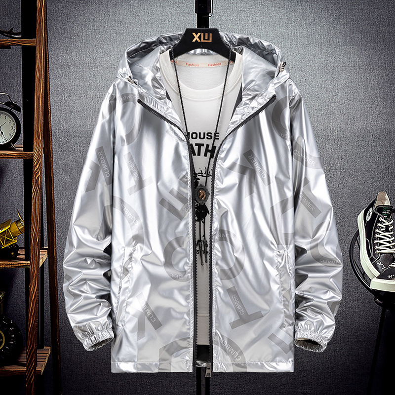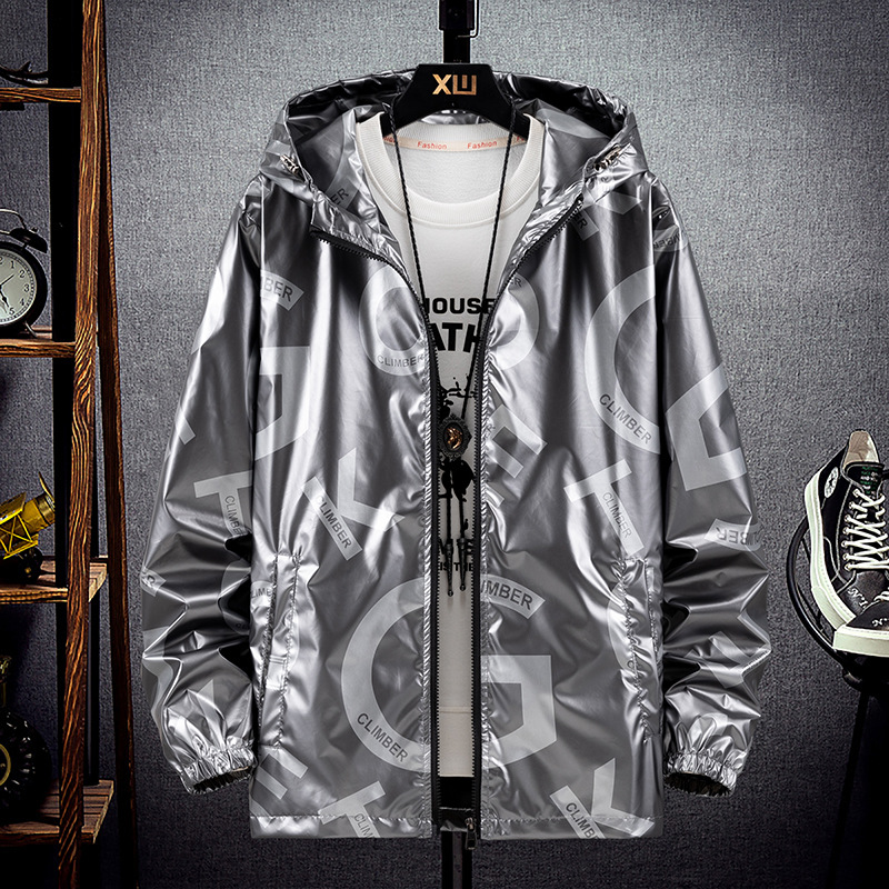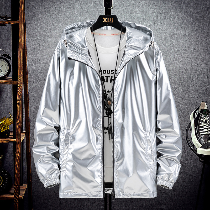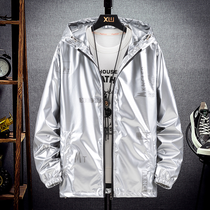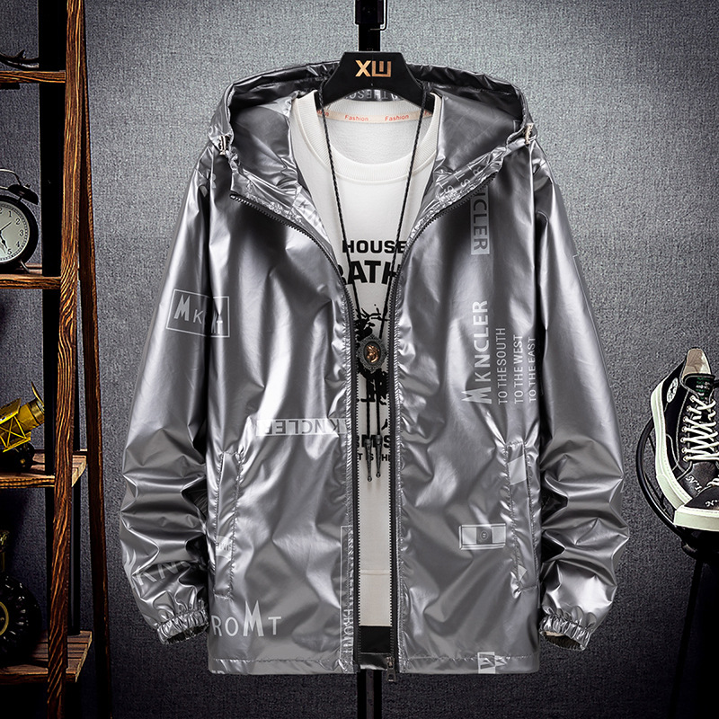 봄과 가을 광택 재킷 플러스 사이즈 패션 브랜드 잘 생긴 실버 남성 자켓 방수 캐주얼 후드 스포츠 한국 탑