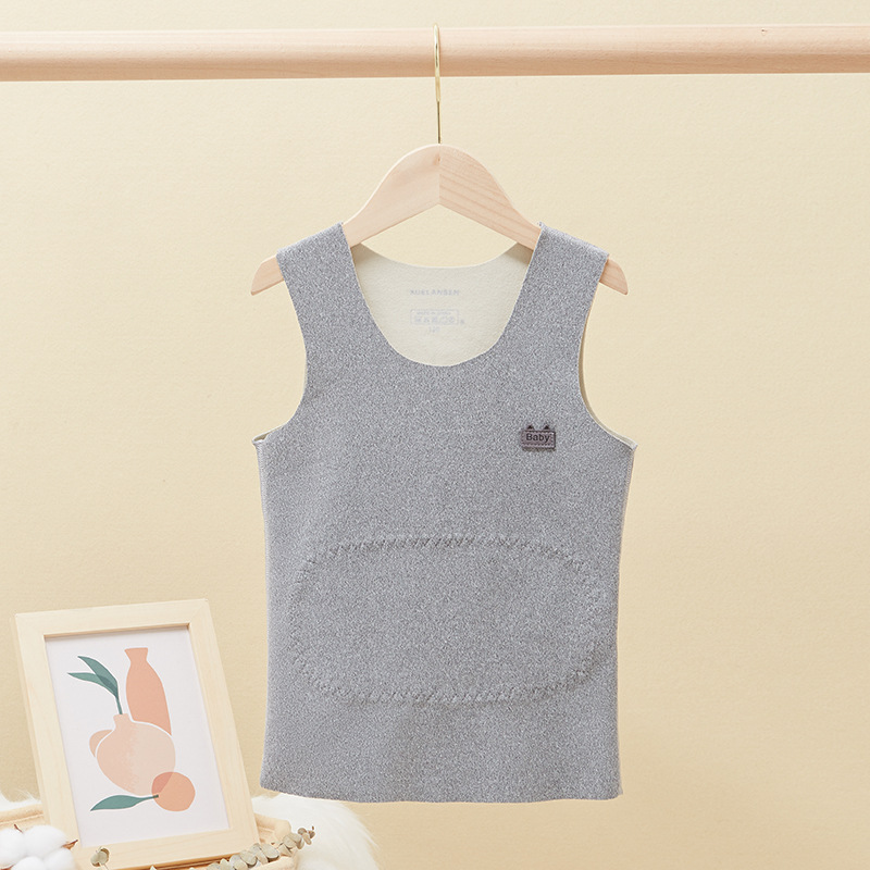 어린이 조끼 벨벳 원활한 2023 가을과 겨울 새로운 소년 소녀 양면 벨벳 따뜻한 패치 배 보호 작은 조끼스토어 가기