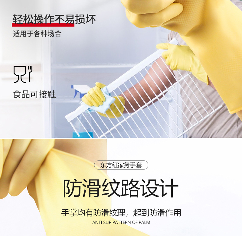 Dongfanghong 가정용 장갑 식기 세척 주방 내구성 방수 남성과 여성의 범용 고무 라텍스 장갑스토어 가기