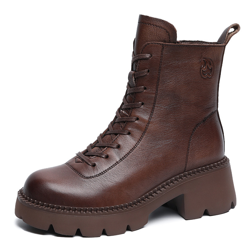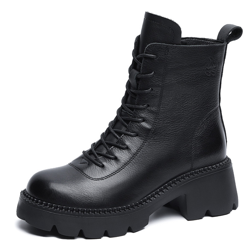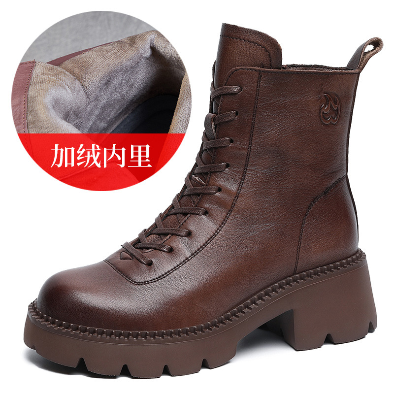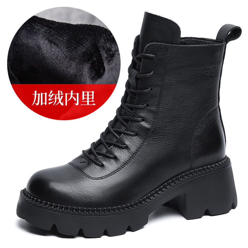 두꺼운 밑창 마틴 부츠 여성 가을과 겨울 2022 싱글 레이어 부츠 새로운 스타일 탑 레이어 소가죽 레트로 고층 유행 부츠 영국 스타일 미드 튜브 부츠스토어 가기