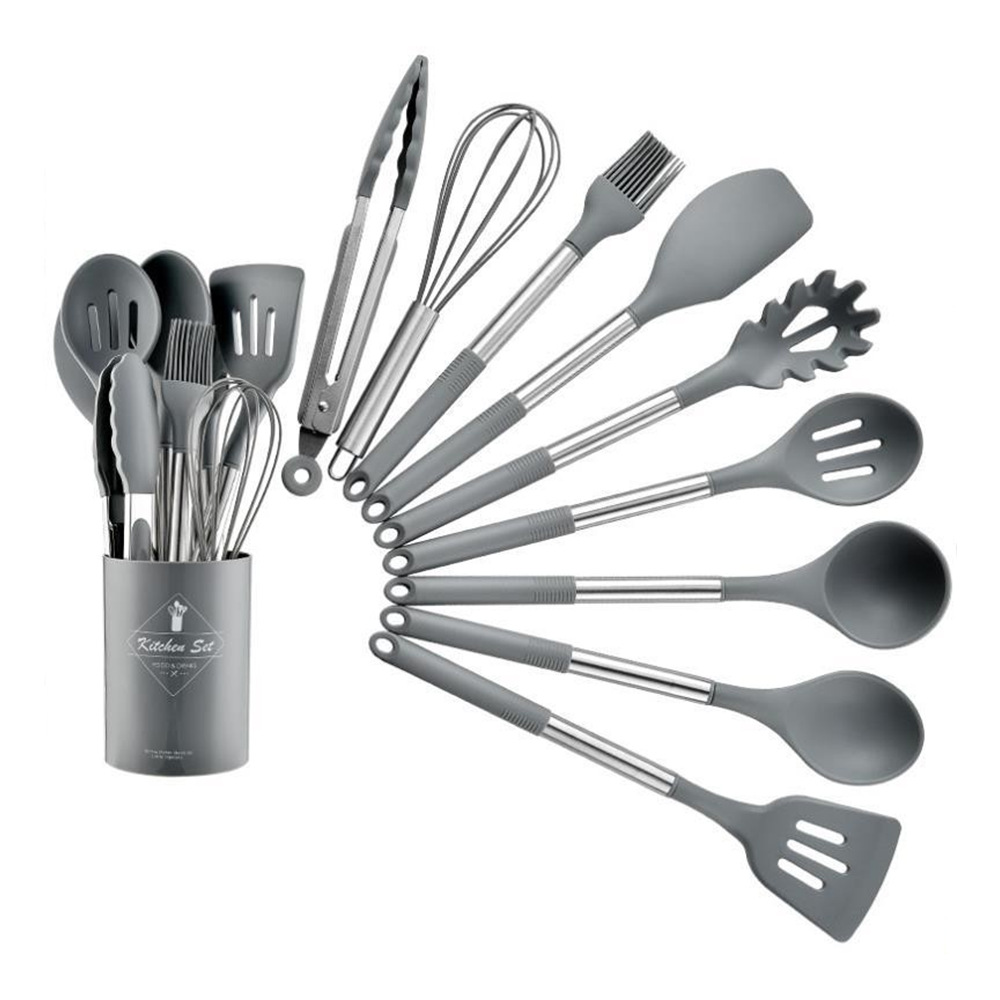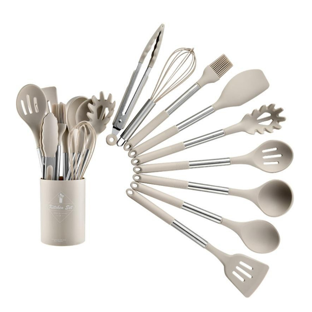 漏铲83g,汤勺87g,小汤勺81g,平头铲83g,刮刀108g,锅铲86g,食物夹118g,打蛋器39.5g,油刷59g,漏勺73g,意粉爪87g,收纳桶207g,收纳架62.5g,彩盒140g,整套约1315g(手工测量)