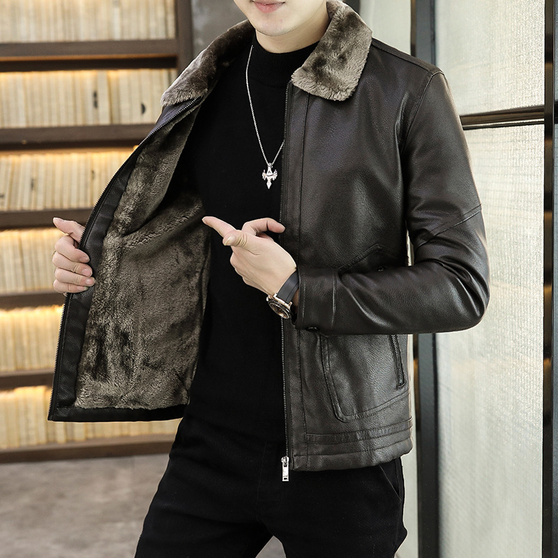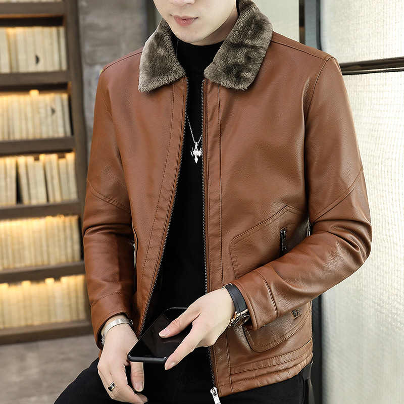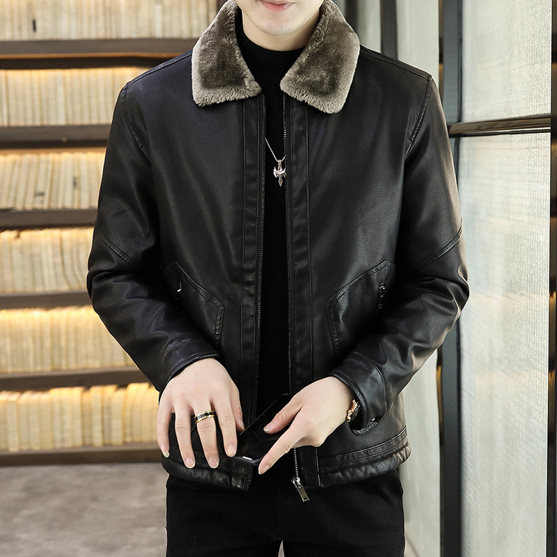 중년 남성 가죽 자켓 겨울 한국 스타일 바이커 자켓 플러스 벨벳 안감 보온 가죽 자켓 남성용 PU 가죽 자켓스토어 가기