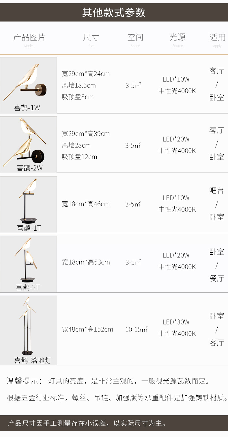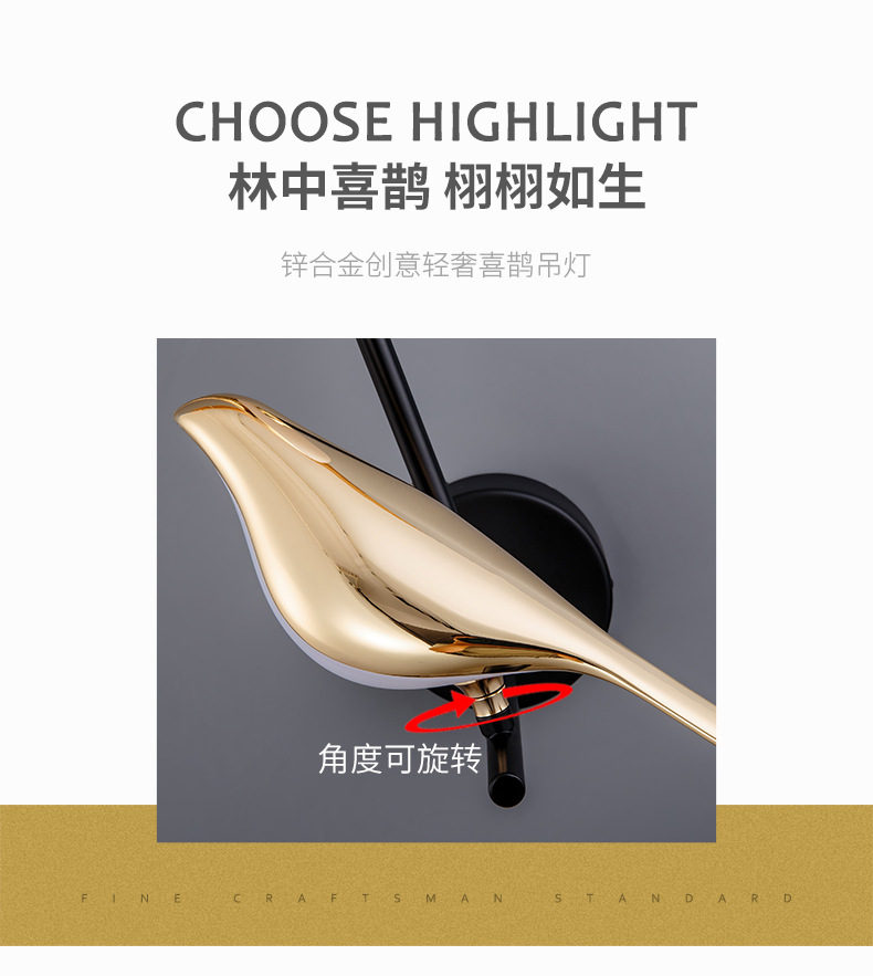 5,灯体颜色:黑色灯体+金色喜鹊/黑色灯体+铬色喜鹊