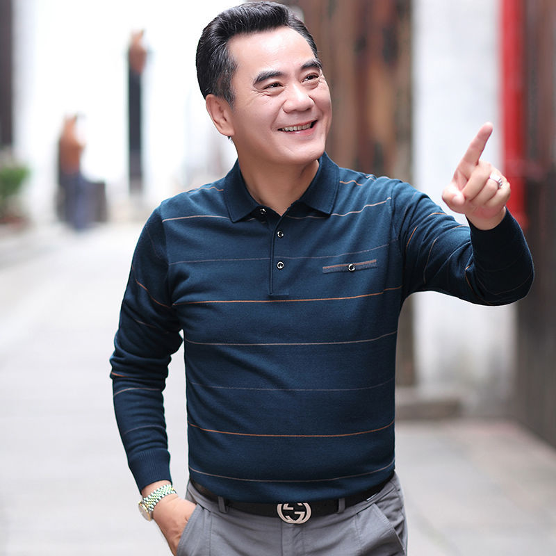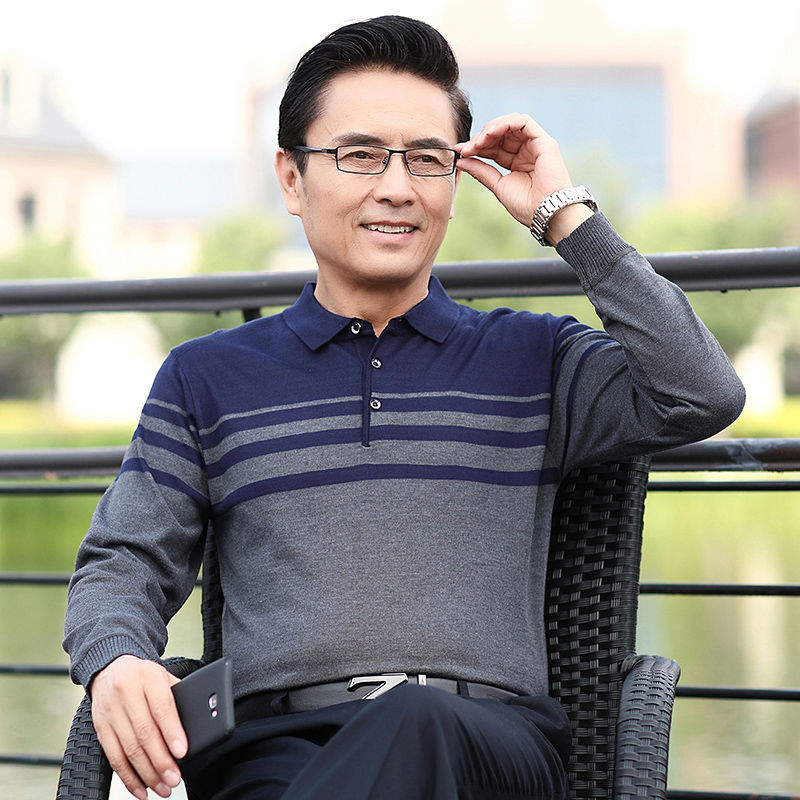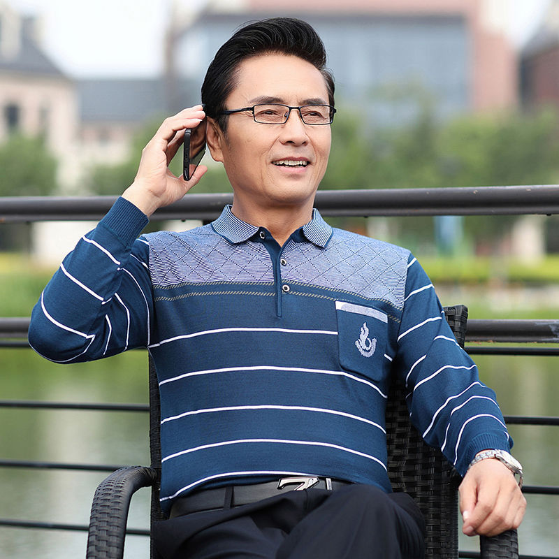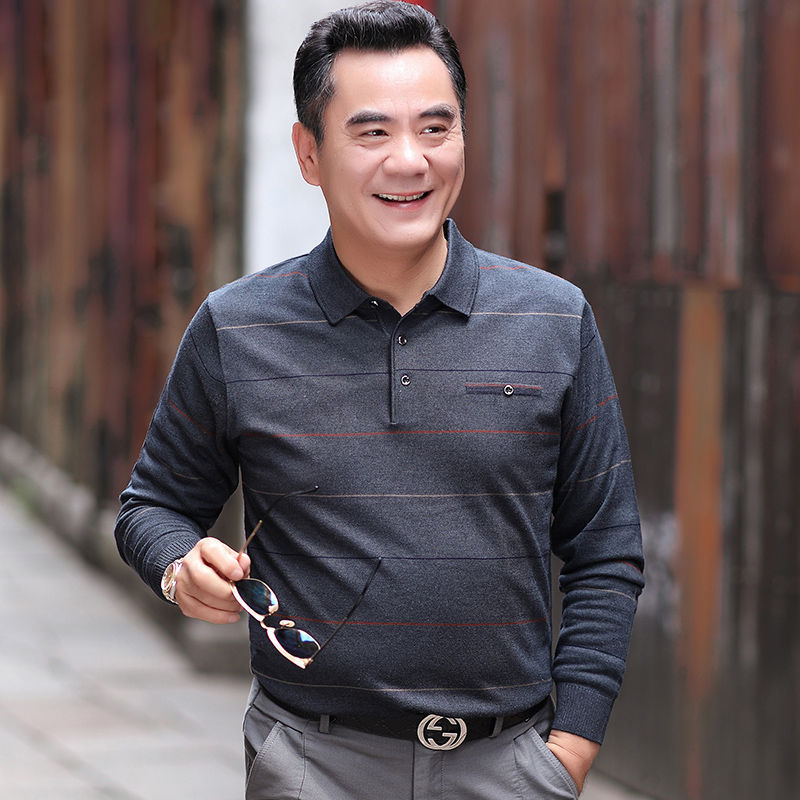 새로운 아빠 가을 탑 중년 및 노인 남성용 긴팔 티셔츠 봄과 가을 얇은 할아버지 엘더 베이스 셔츠스토어 가기
