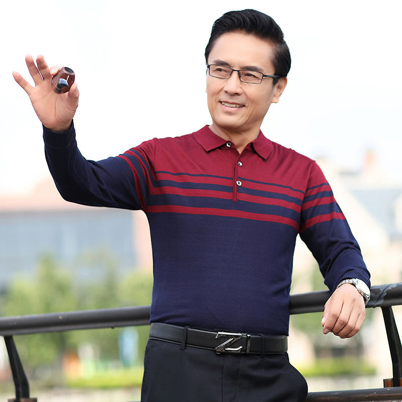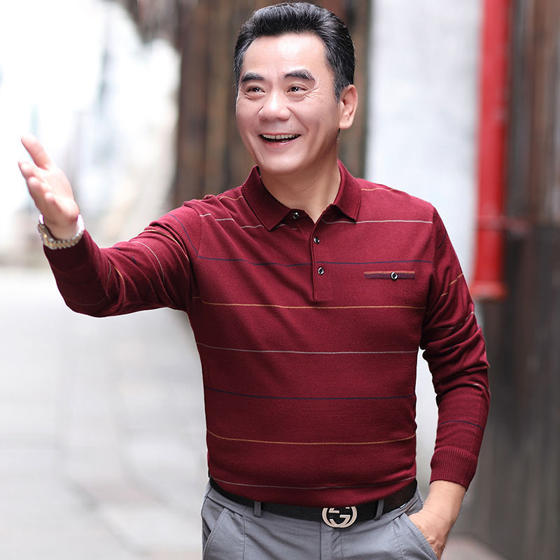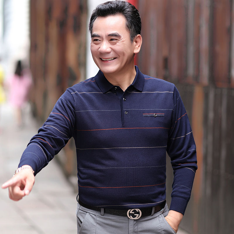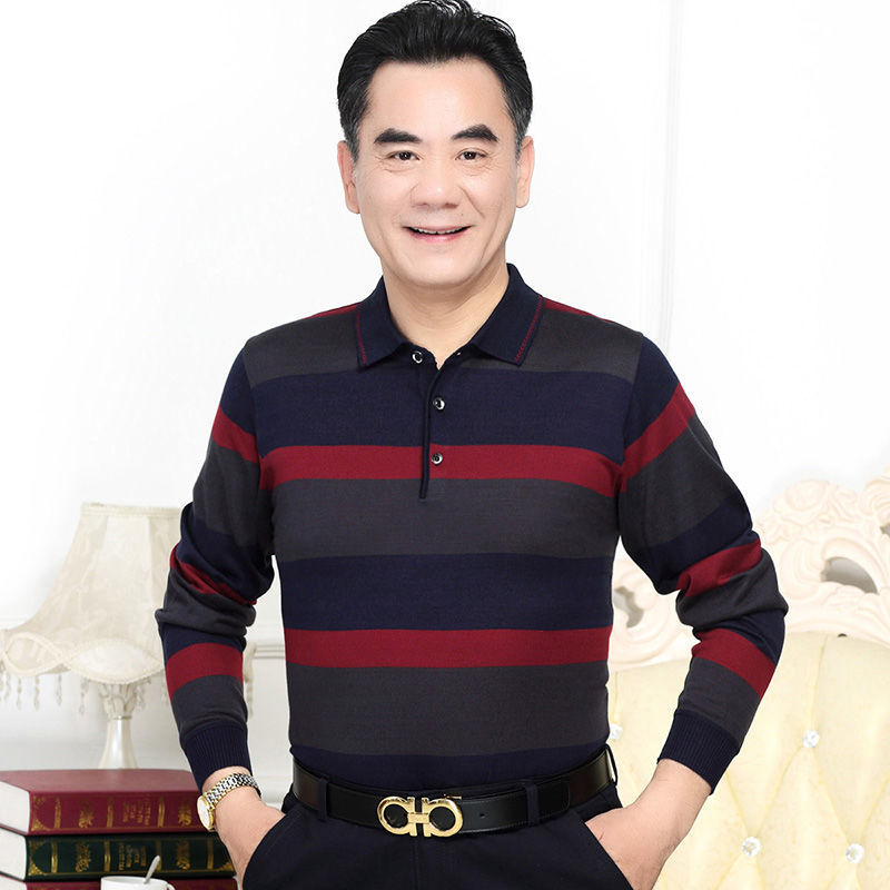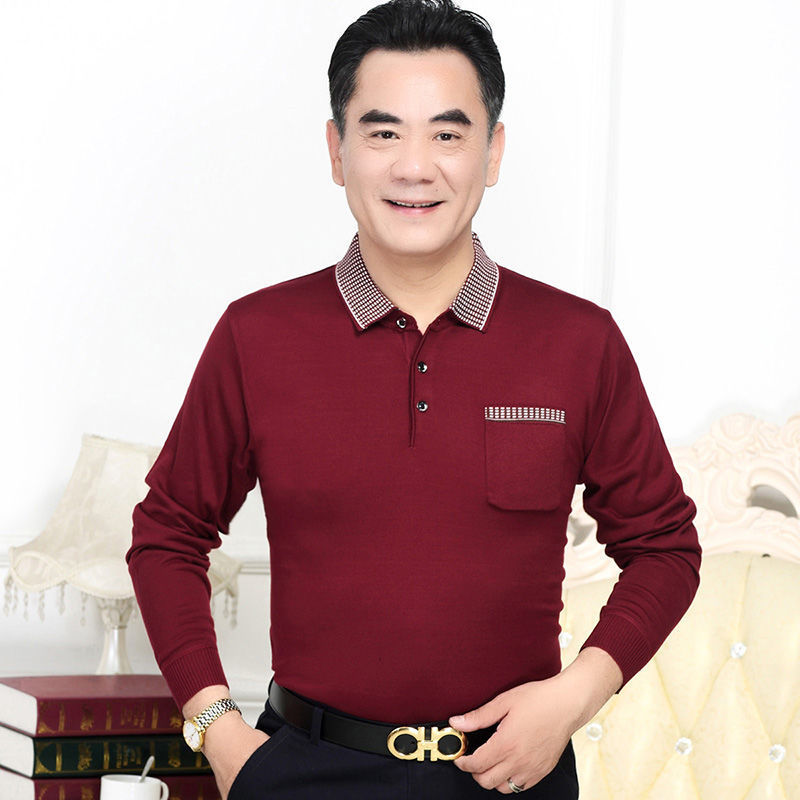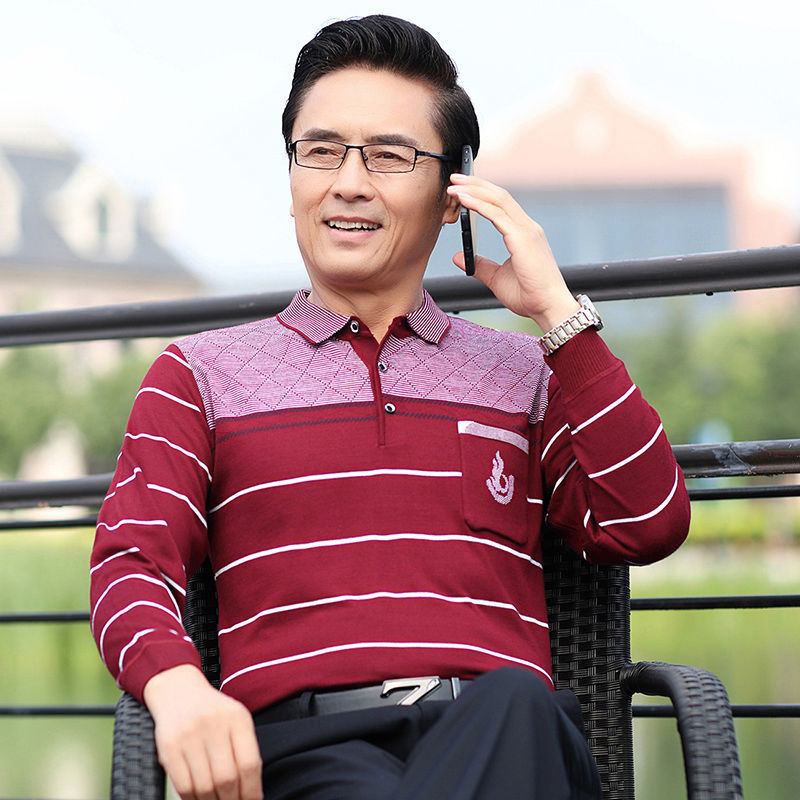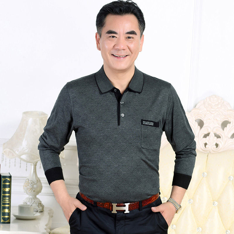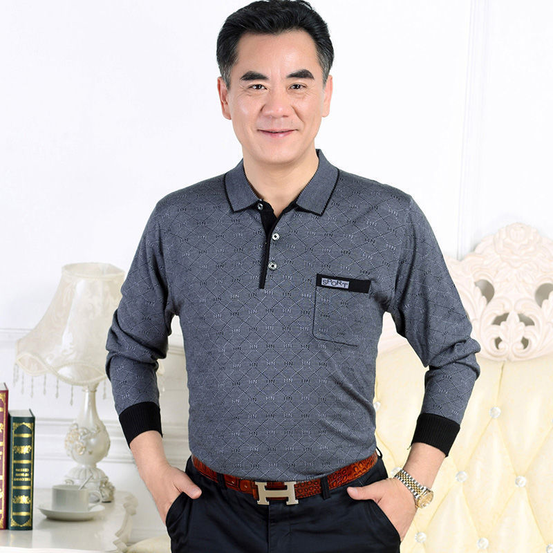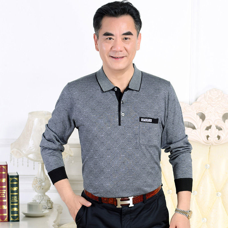 새로운 아빠 가을 탑 중년 및 노인 남성용 긴팔 티셔츠 봄과 가을 얇은 할아버지 엘더 베이스 셔츠