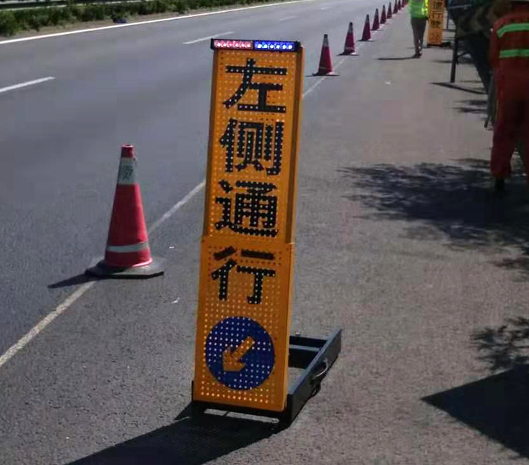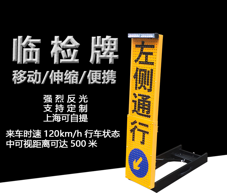 빨간색과 파란색 플래시 경고등이있는 교통 충전식 모바일 임시 검사 카드 개폐식 접이식 프롬프트 개폐식 카드