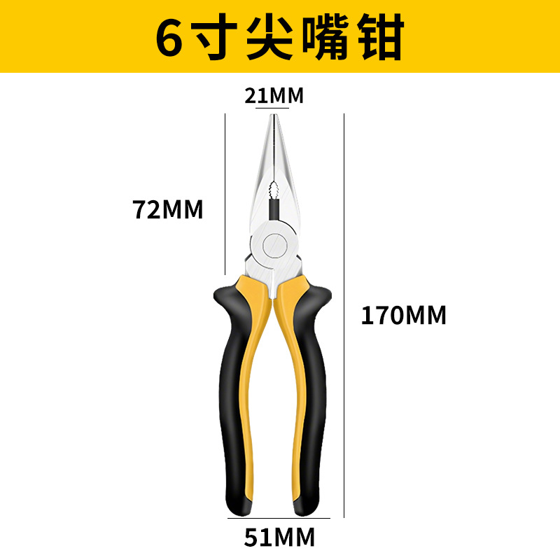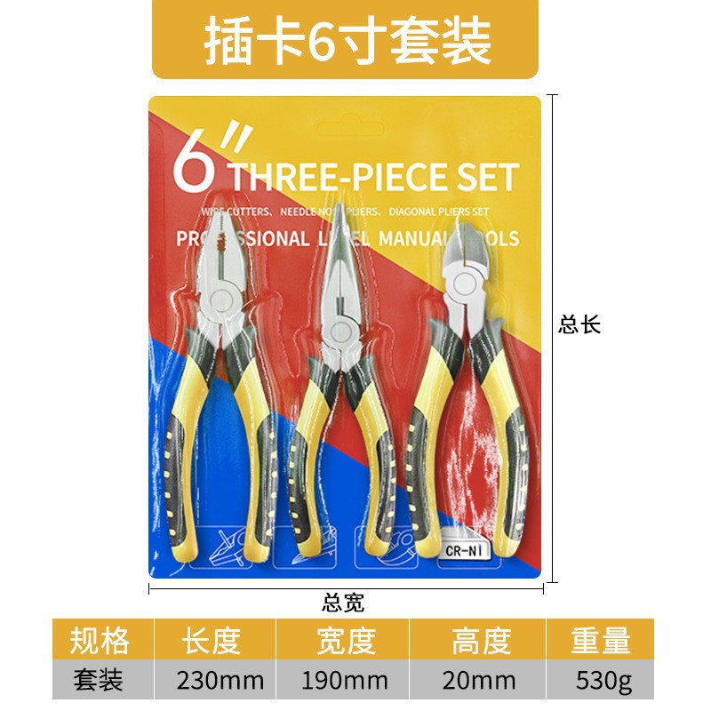 • 6寸钳子套装工业级电工绝缘钢丝钳带包装尖嘴钳家用多功能老虎钳17.6折扣价:17.6