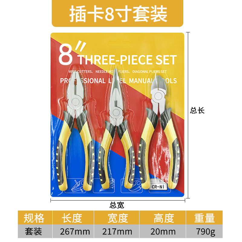 • 批发价五金工具8寸老虎钳尖嘴钳斜口钳多功能带包装6寸8寸钢丝钳5.88折扣价:5.88