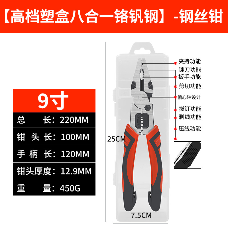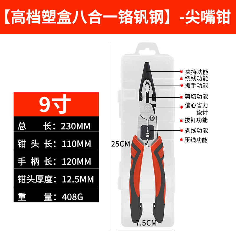 • [고급 플라스틱 상자 8-in-1 크롬 바나듐 강철]-바늘 코 펜치