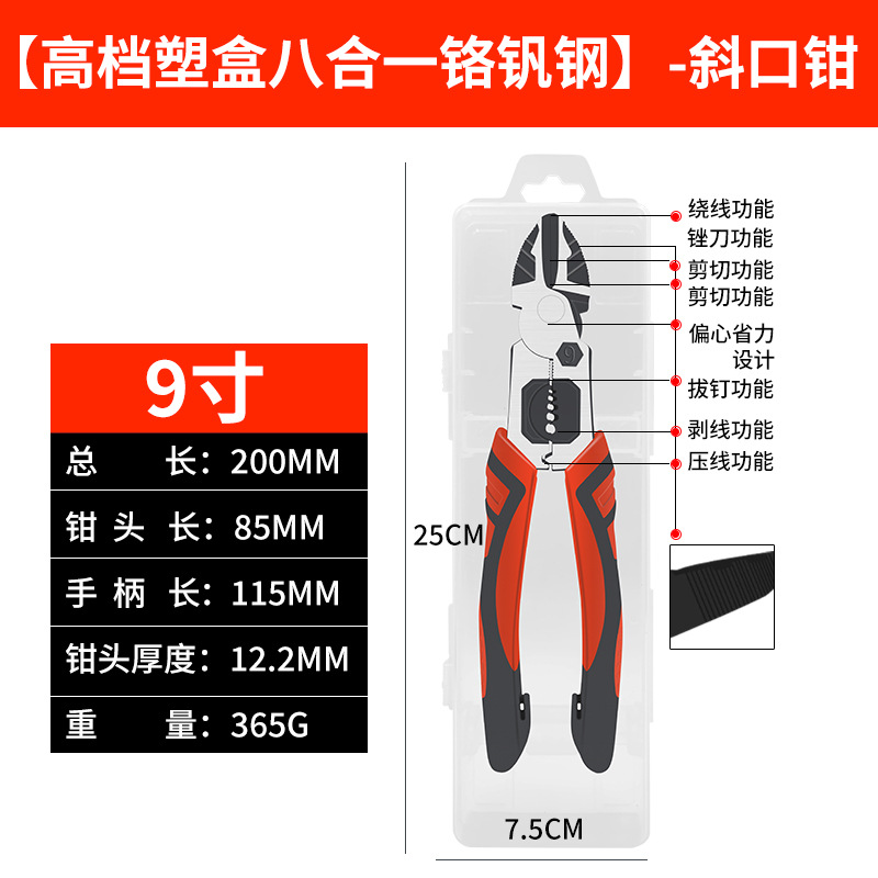• [고급 플라스틱 상자 8-in-1 크롬 바나듐 강철]-대각선 펜치